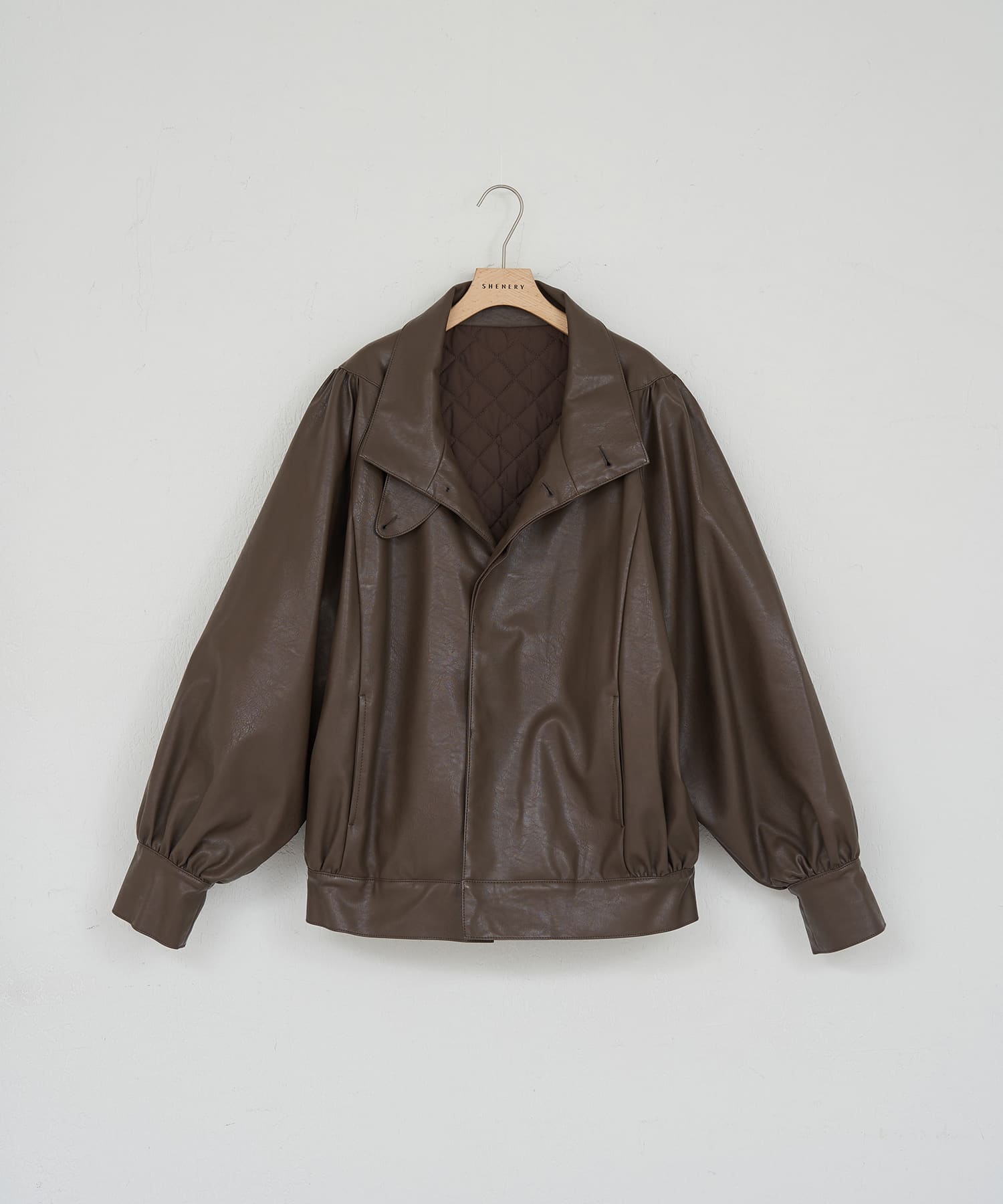 • 09. フェイクレザーブルゾン Dark brown / Black 今年トレンドのヴィンテージ感のあるフェイクレザーブルゾン。