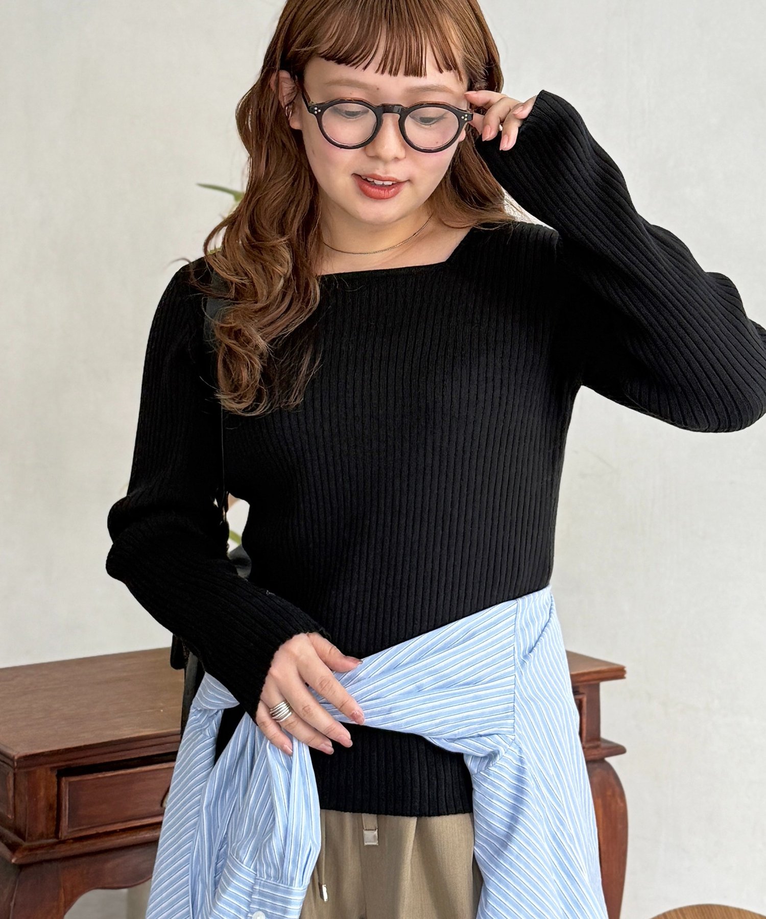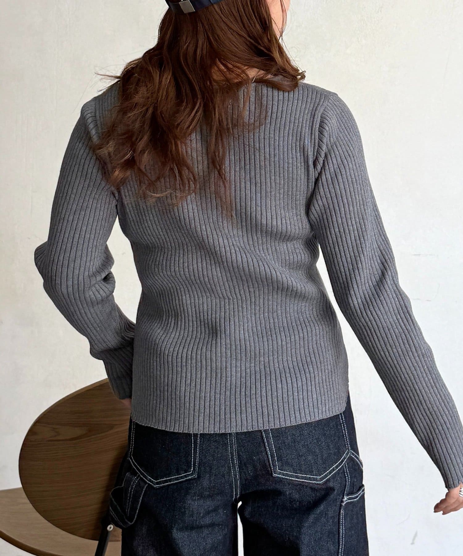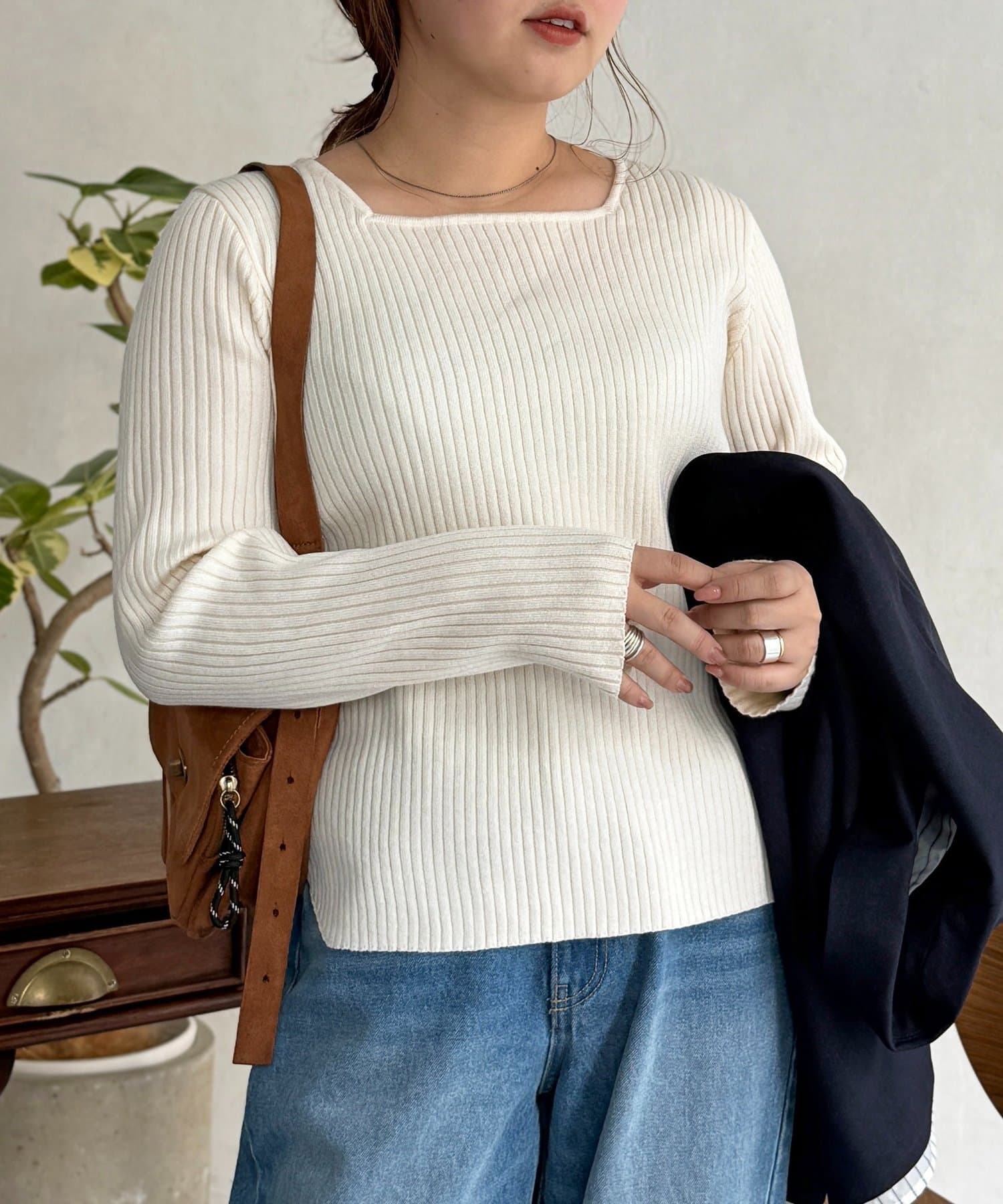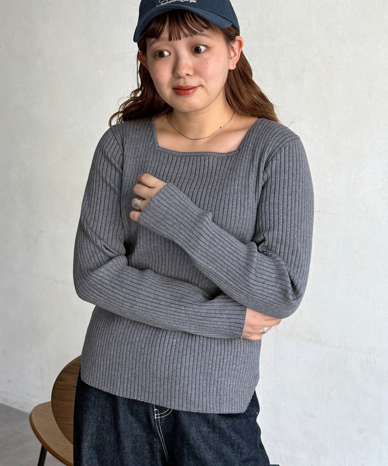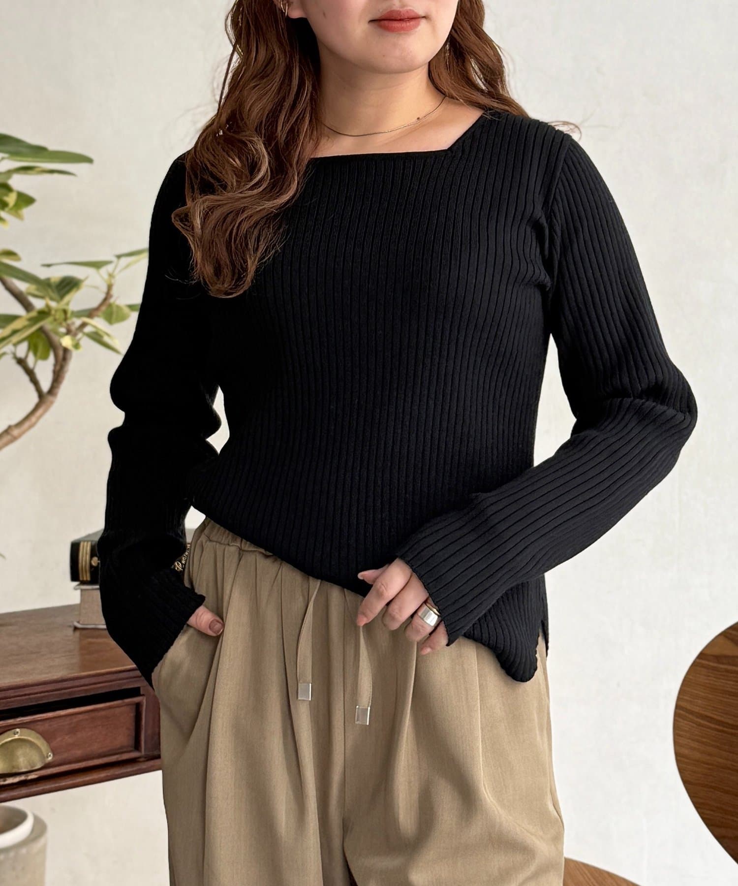 スクエアネックリブニット