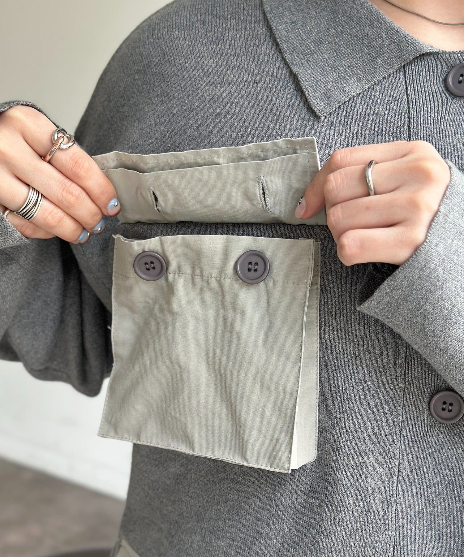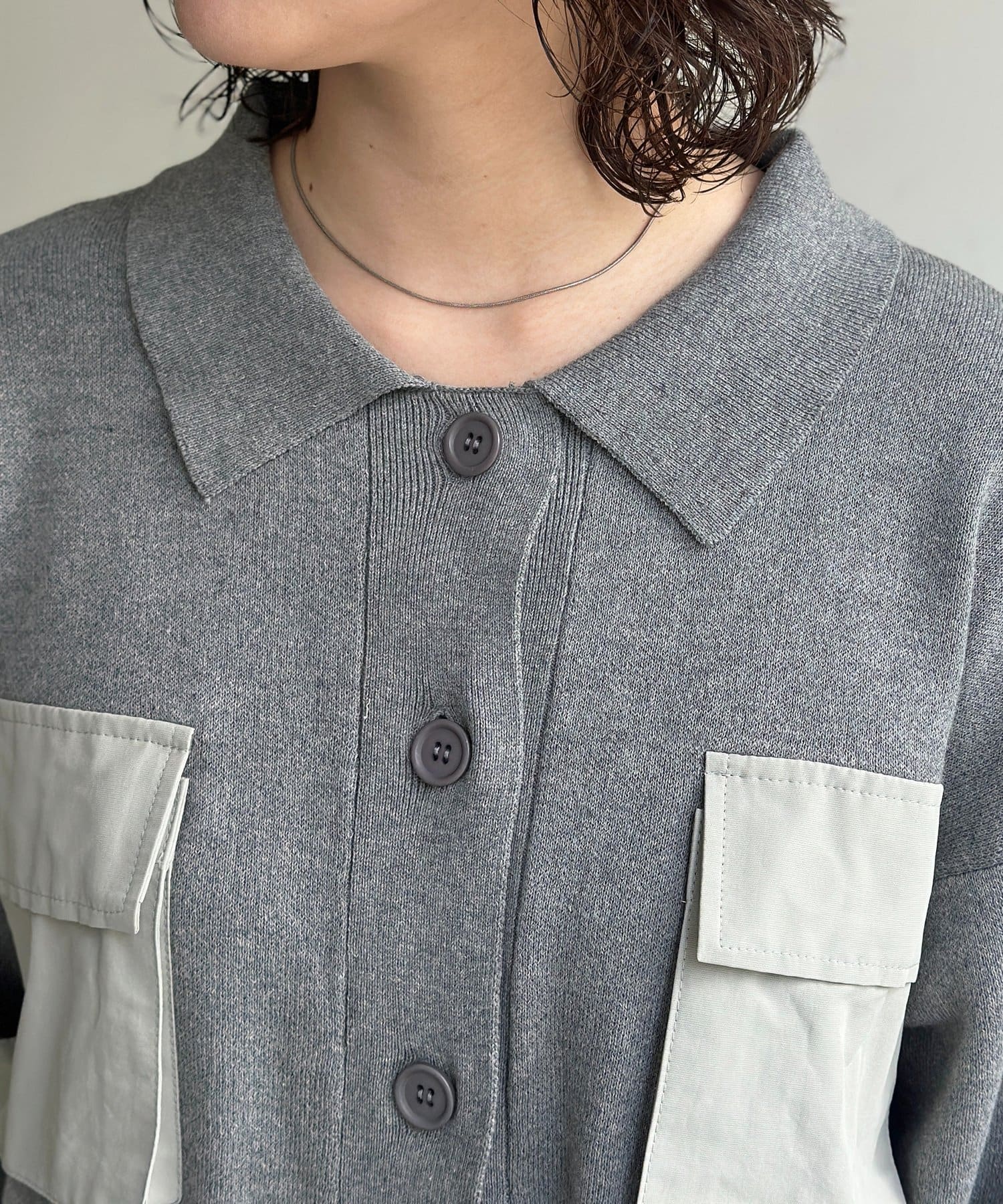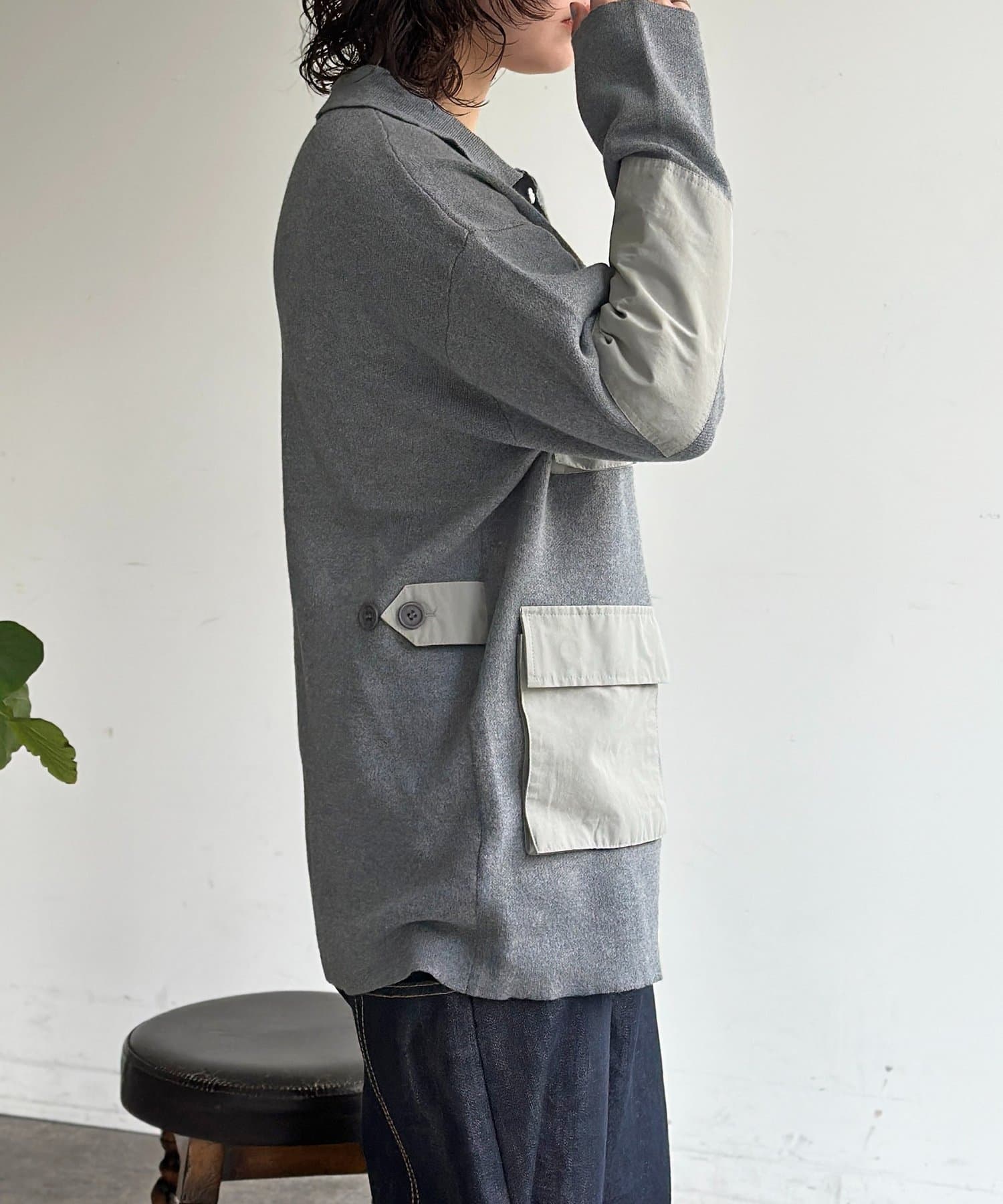 ニット×ナイロンの異素材ミックスが