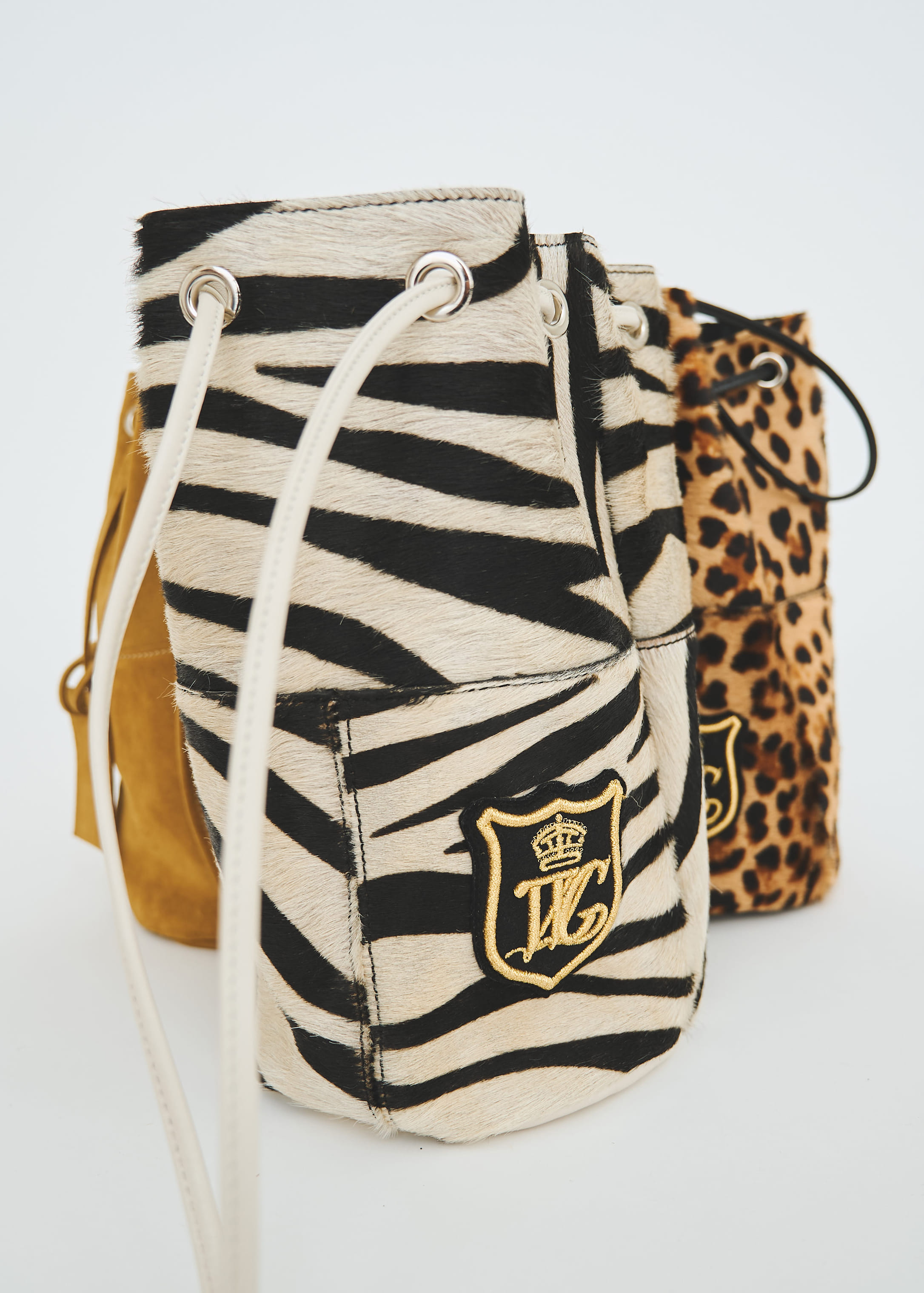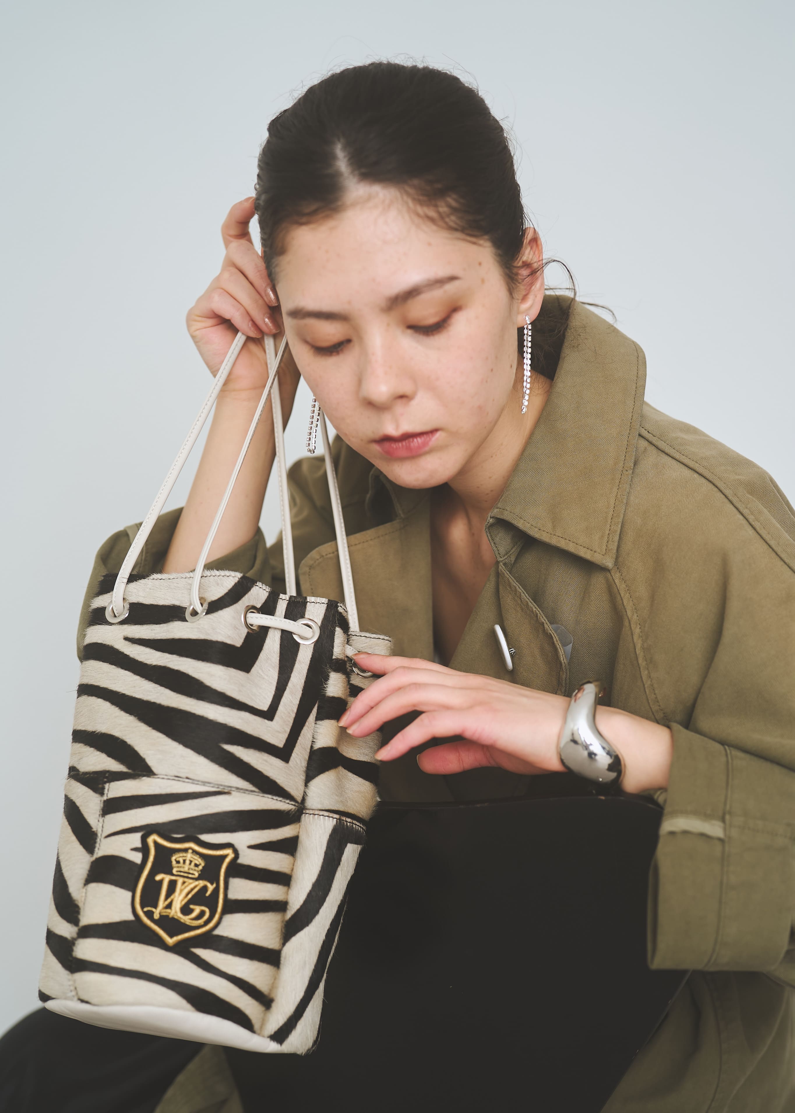 鮮やかな発色と、しっとりとした柔らかな手触りが魅力のゼブラ柄巾着バッグ。