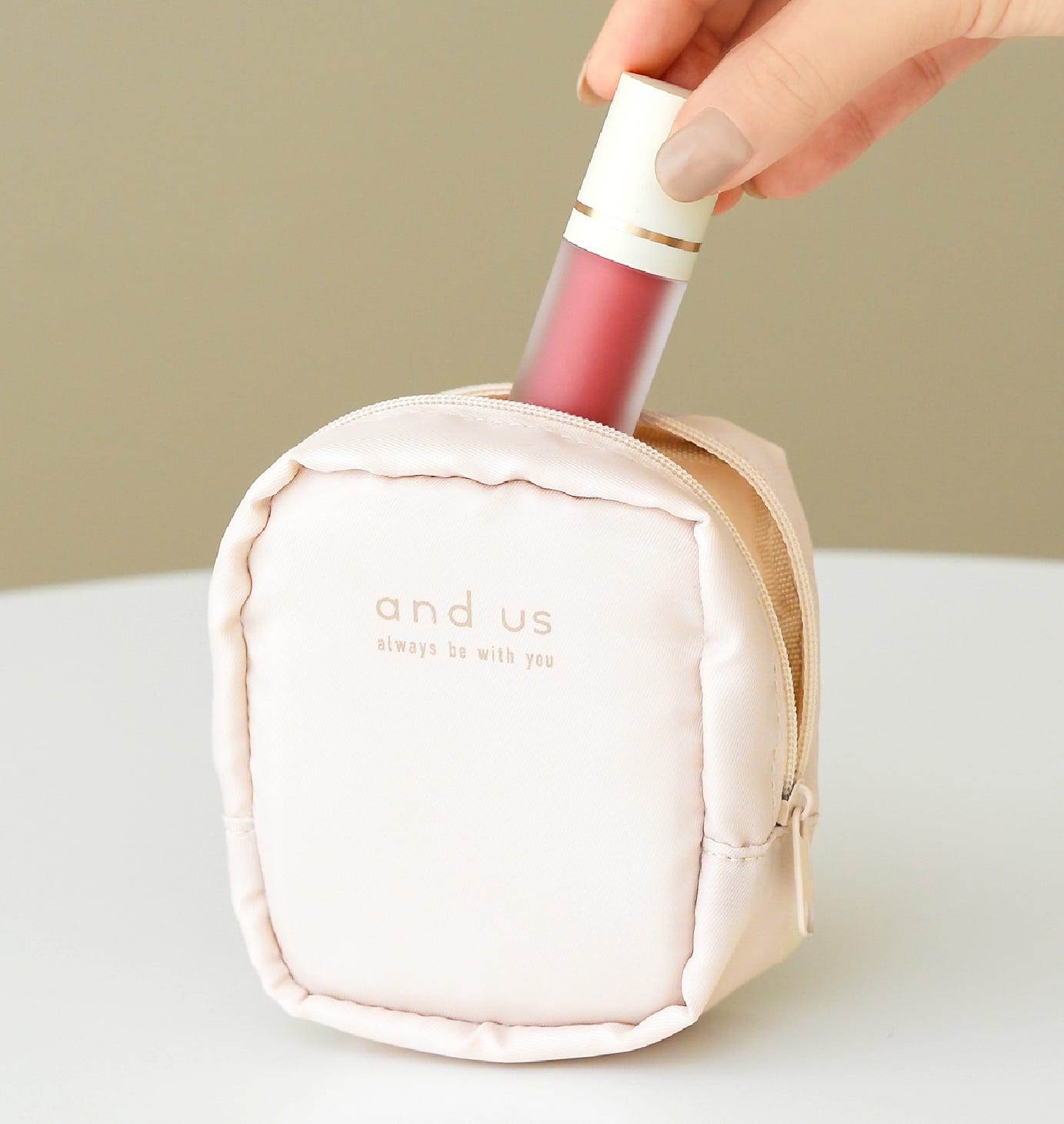 リップやお直し用のコスメを入れられ、必要最低限だけを持ち歩きたいときに使いやすいサイズです。