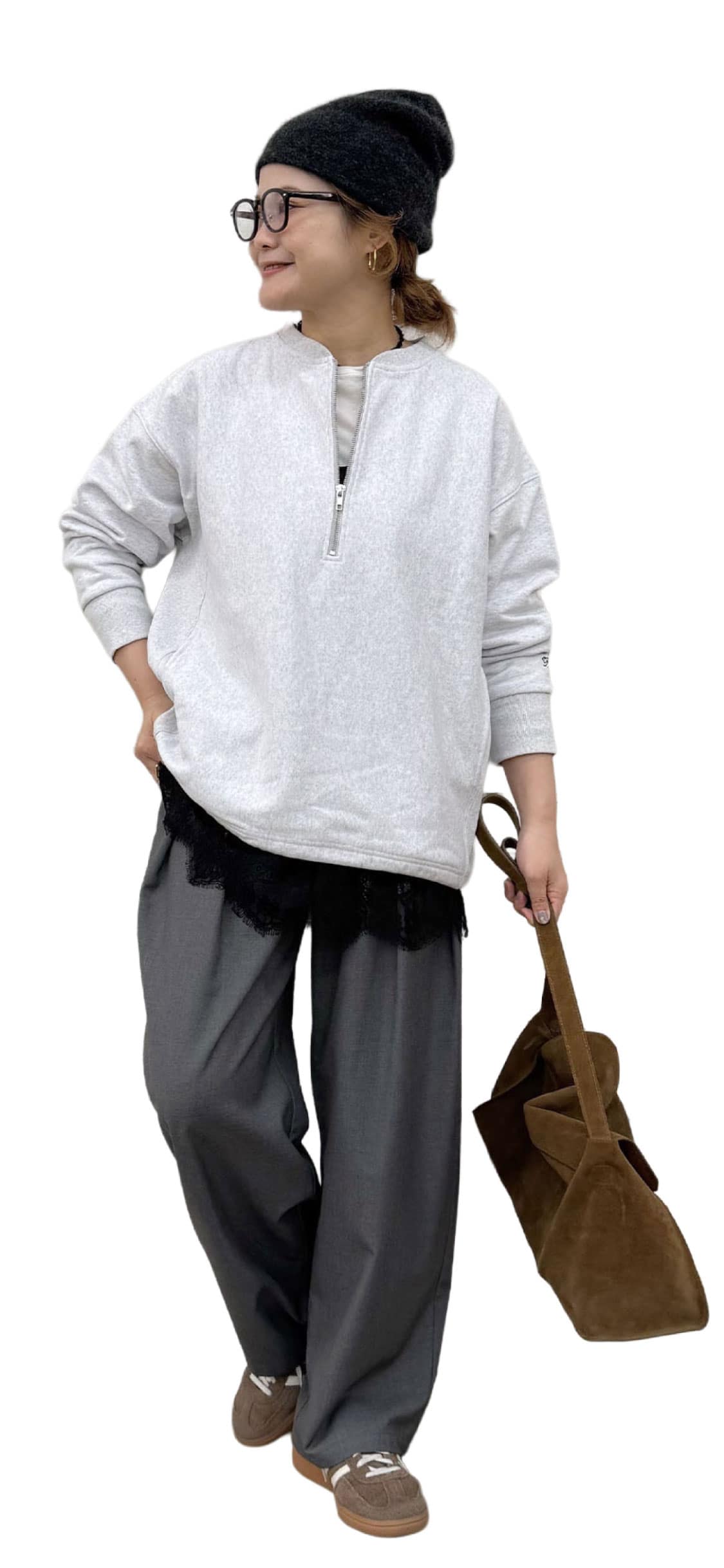 - half zip sweat & rib pants -