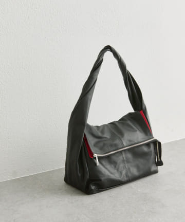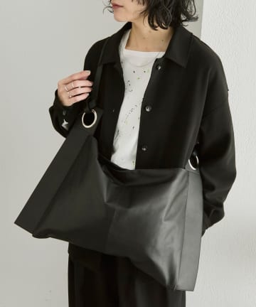 ショルダーのねじりや大きなハトメデザインがアクセントになり、洗練された大人のスタイルを演出します。
