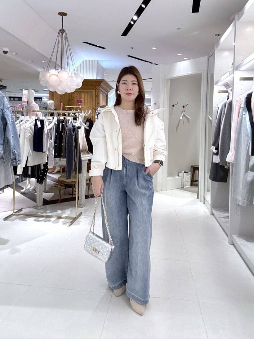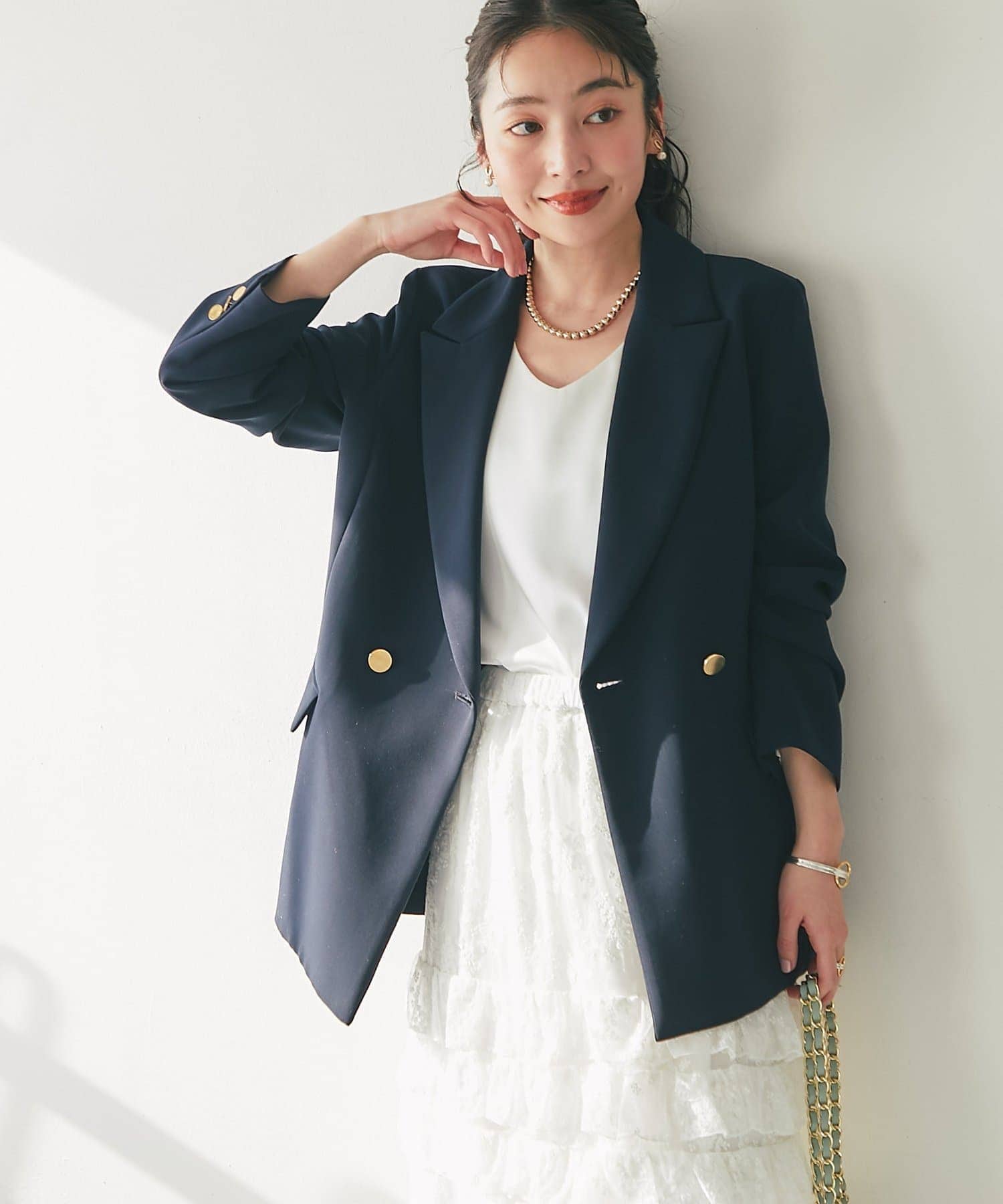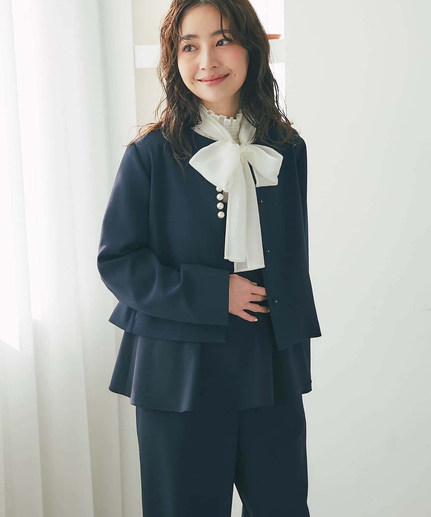 身幅はゆったりとしているので抜け感があり、高めの襟で小顔効果も期待できます。