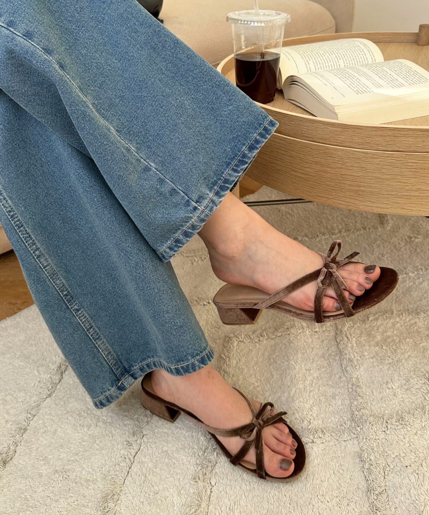 ベロアクロスリボンミュール