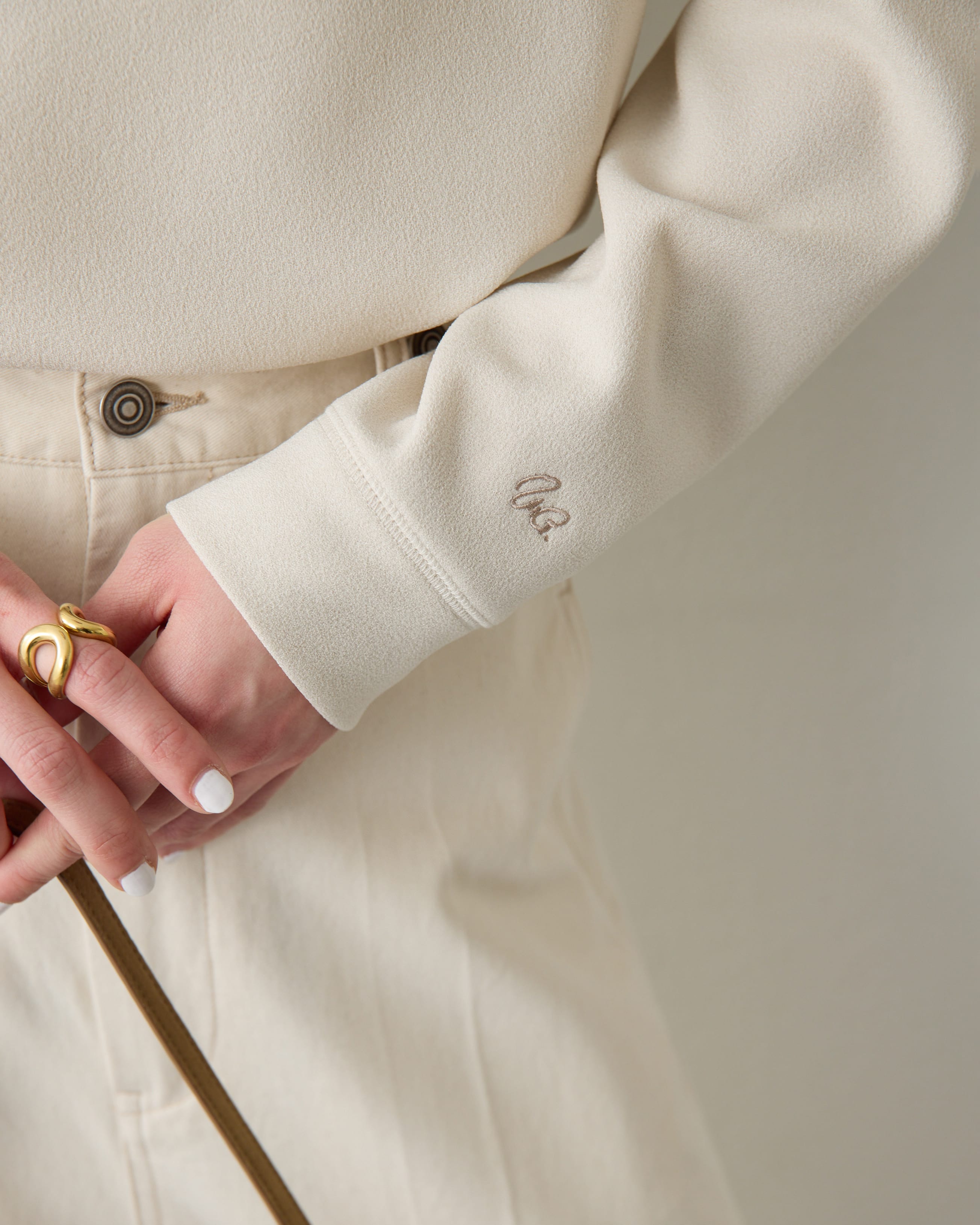 袖口のワンポイント刺繍は、色や位置にこだわったさりげないアクセントに。
