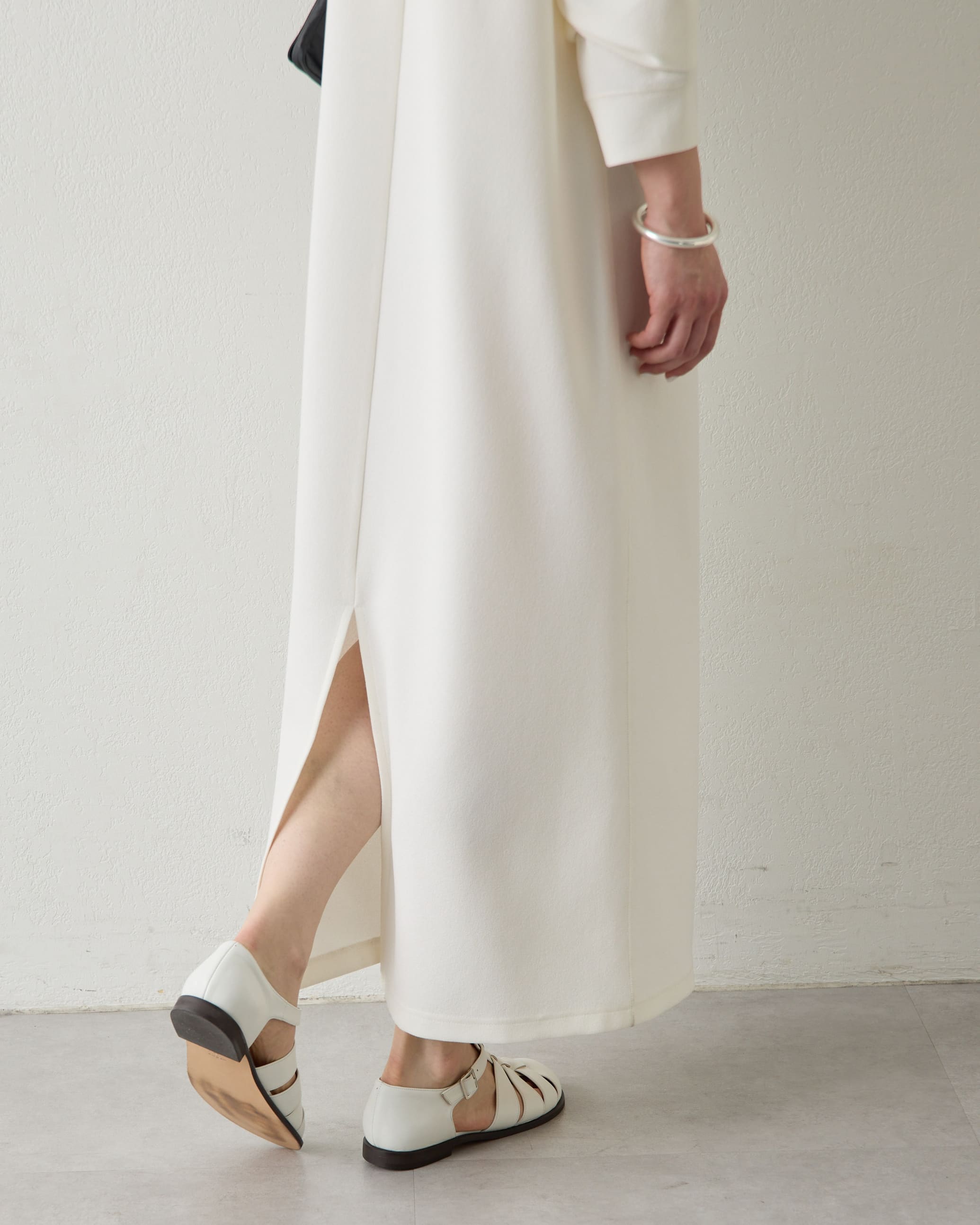 後ろにスリットデザインを施し、足さばきの良さと女性らしいアクセントをプラス。