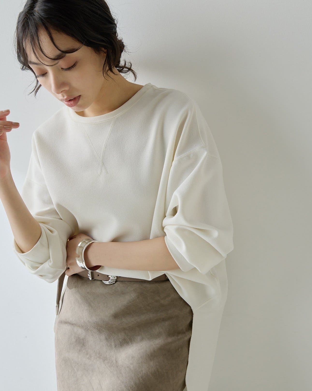 身体のラインを拾いにくいサイズ感とさらりとした肌触りで、