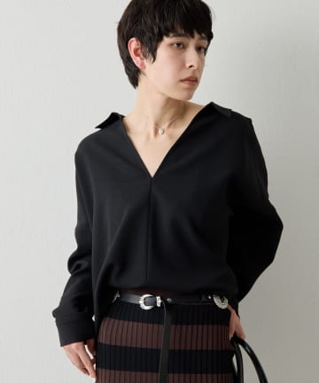 襟元の抜け感が女性らしい、大人の着こなしが叶う万能ブラウス。