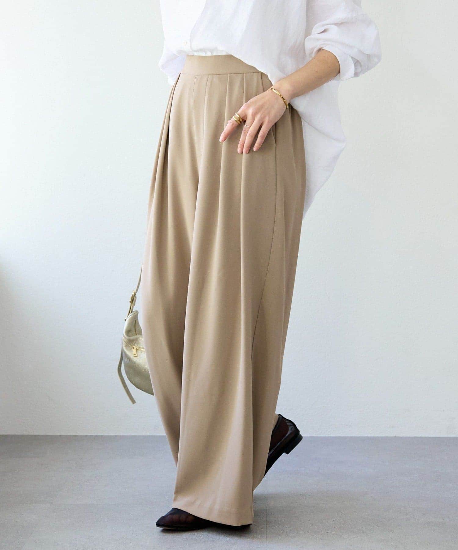 【-3kg見え/ウエストゴム/ウォッシャブル/3サイズ】タックワイドスラックス