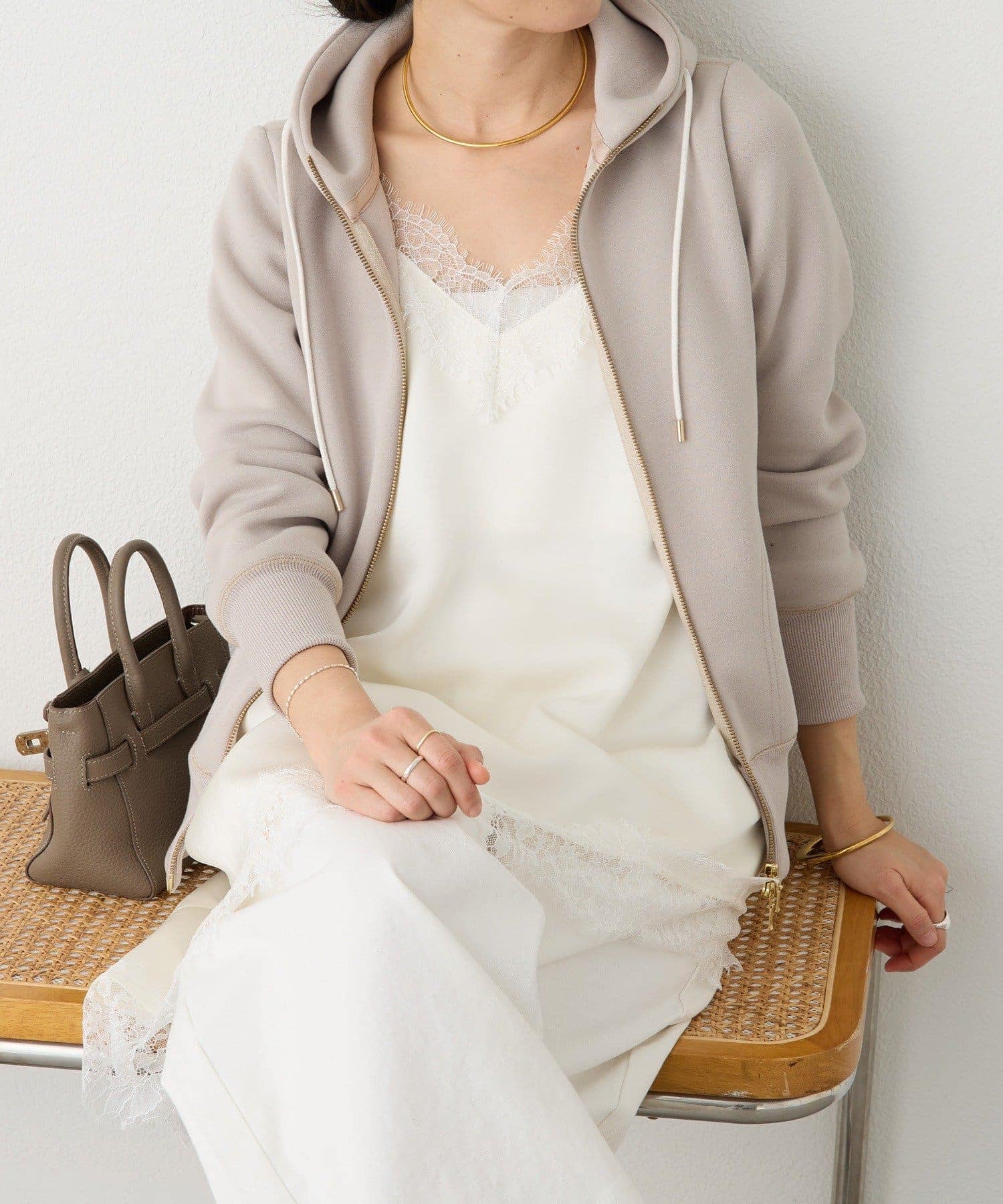 【【新色追加】【WEB限定/キレイめ上品】スポンジダンボールZIPパーカーカットソー
