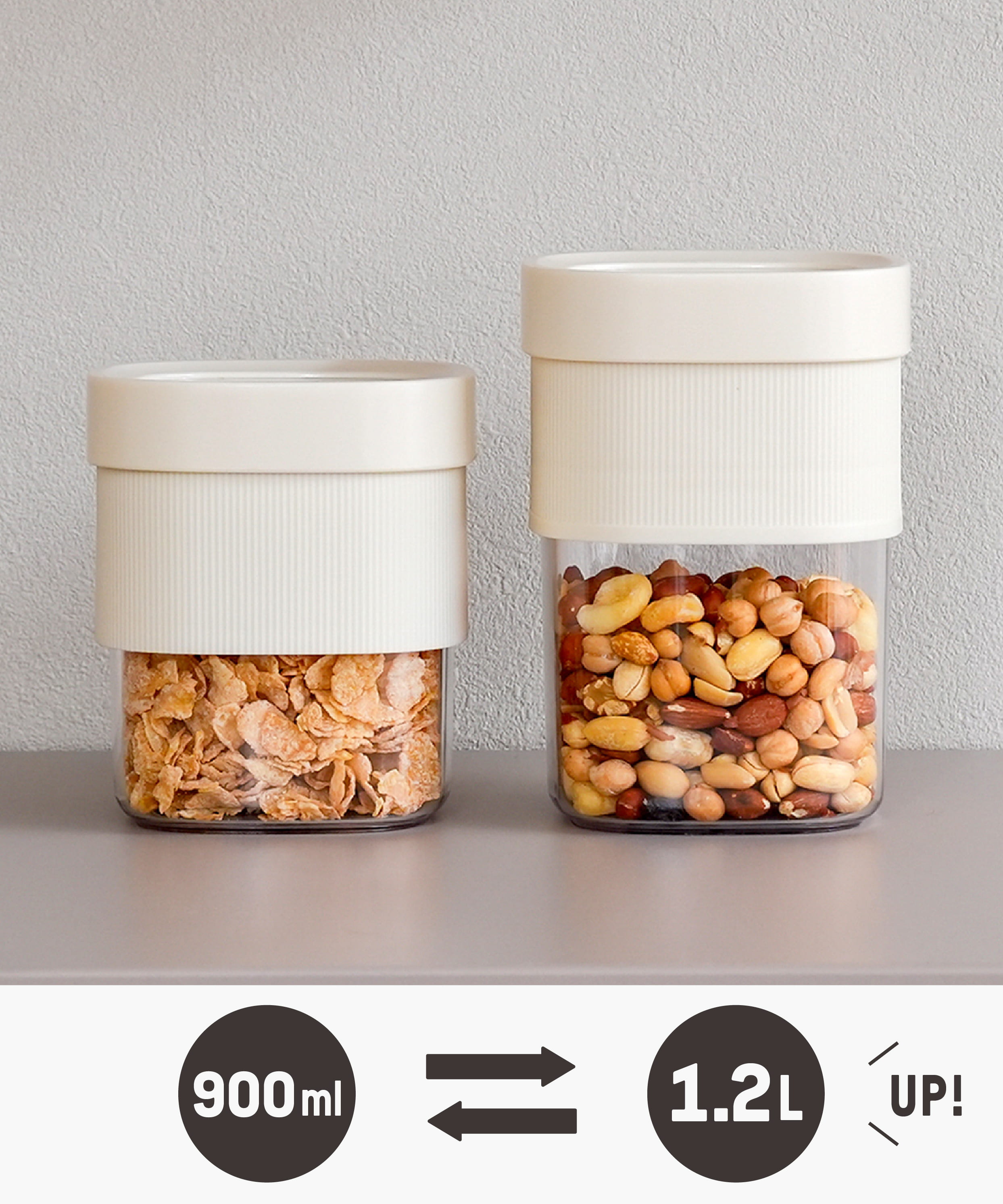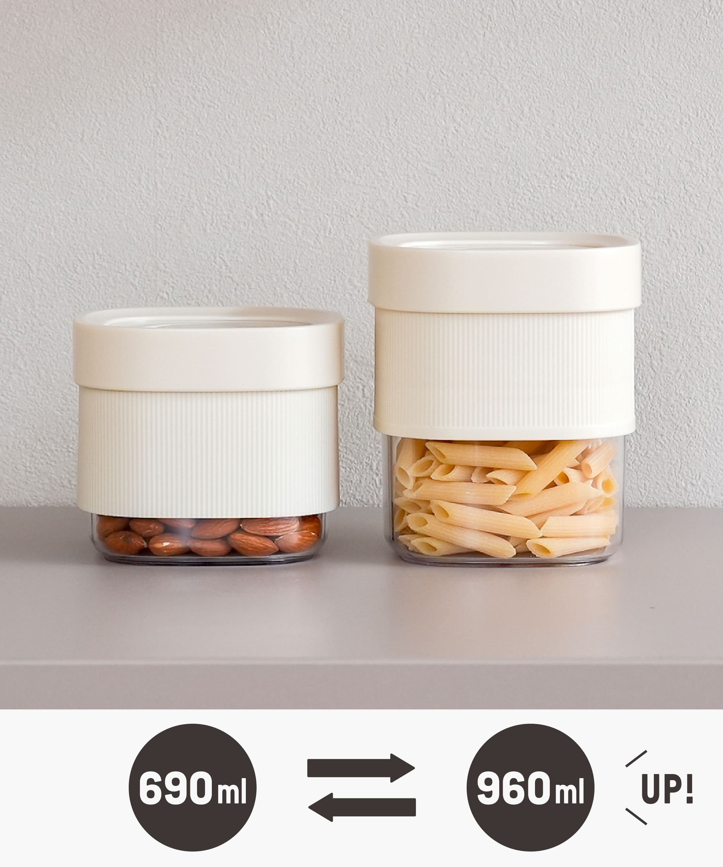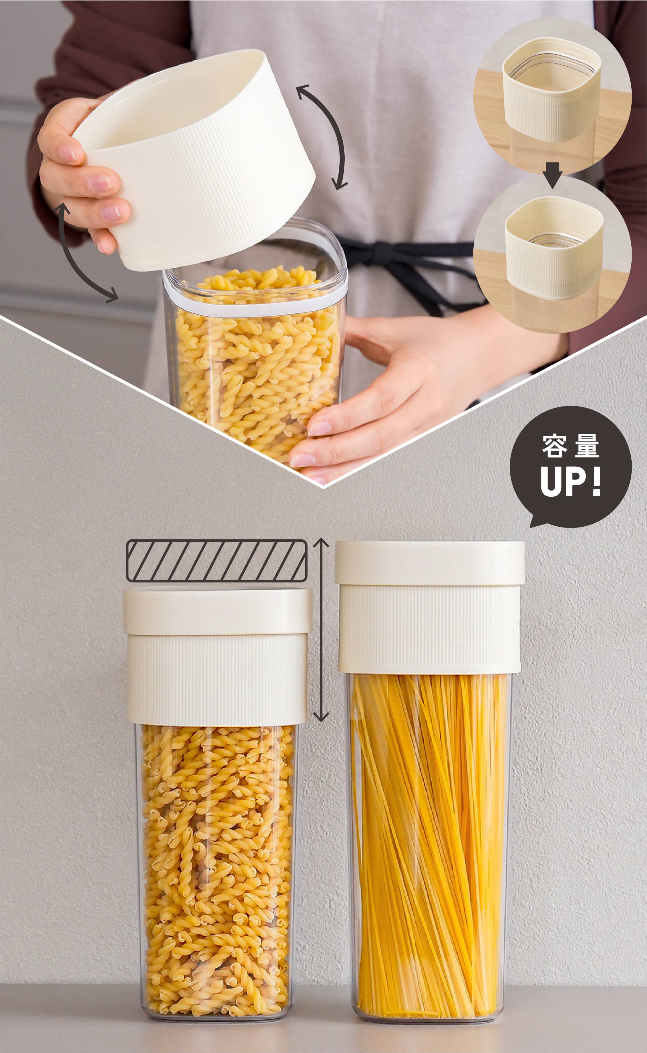 パーツを上下に入れ替えることで、高さを変えられる保存容器。
