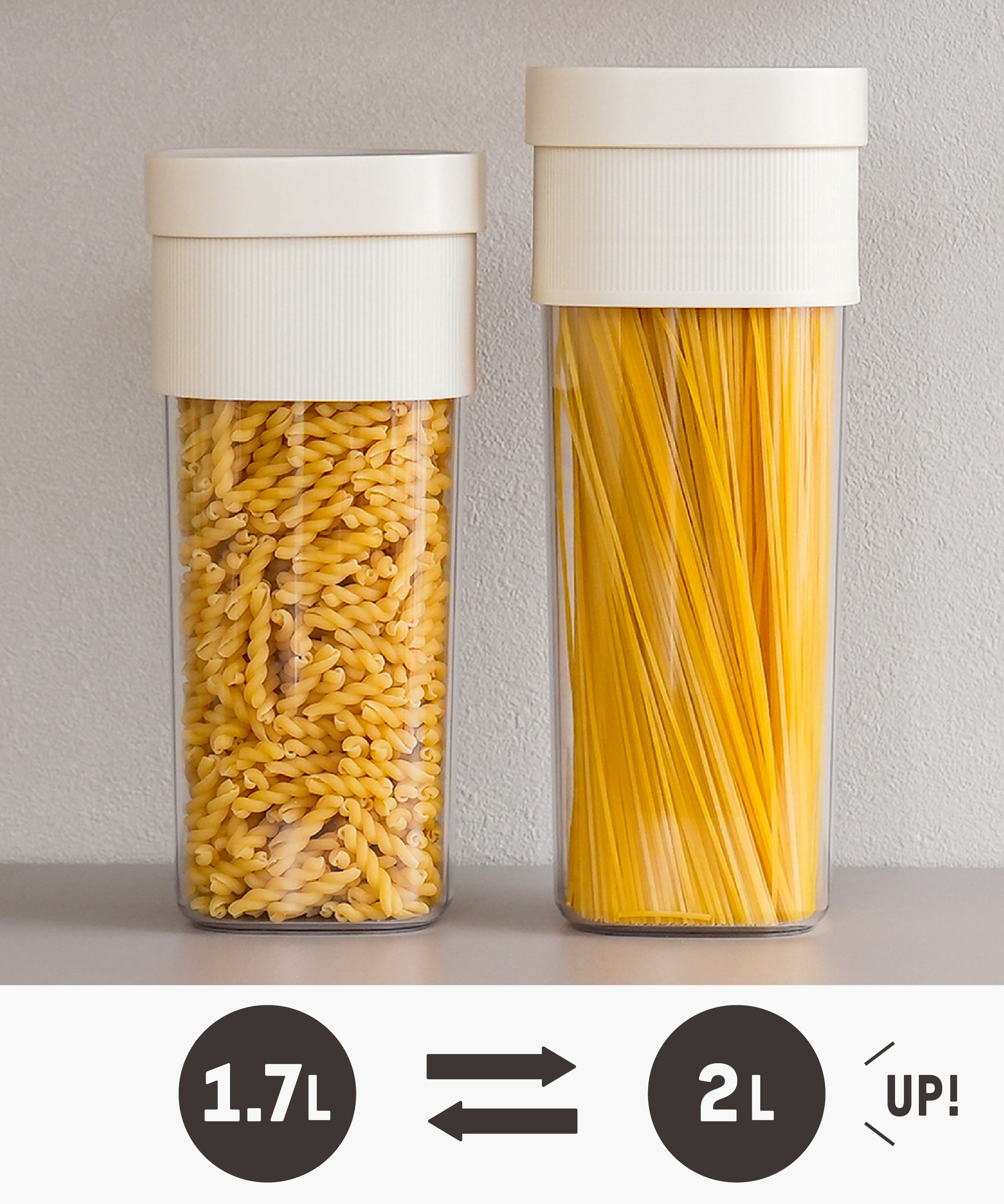 中身に合わせて容量を調整できるので、パスタやお菓子などの保存にも便利です。