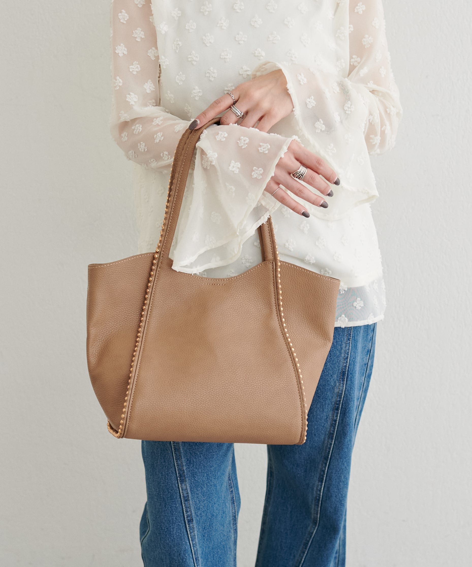 足元はローファーやスニーカーで抜け感を、 ボールチェーントートでアクセントをプラス。 毎日のスタイリングをアップデートしてくれるラインナップを、ぜひご覧ください。