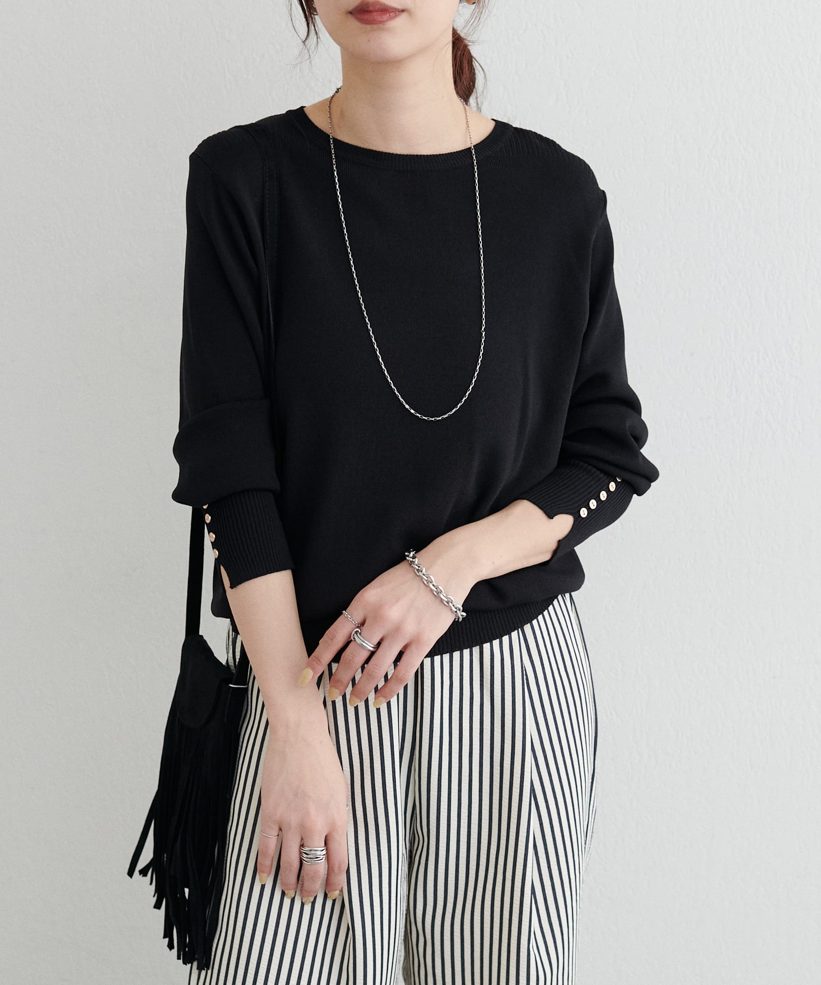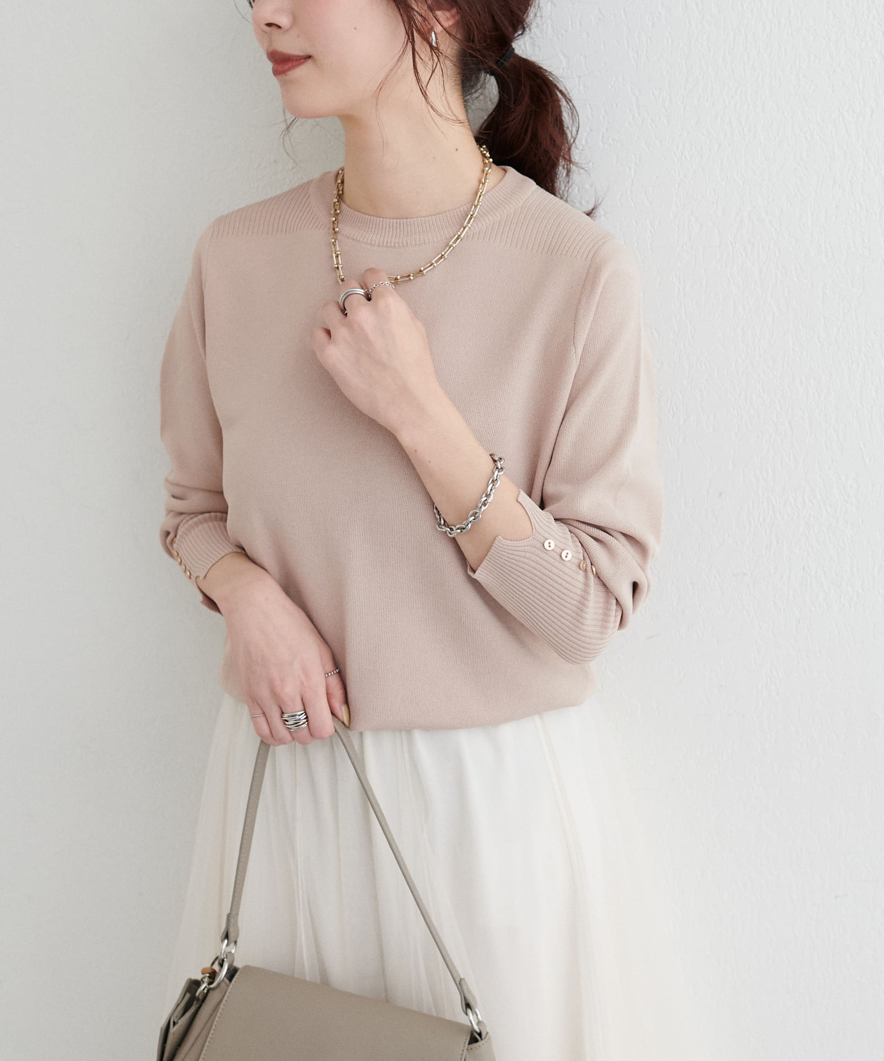 • 袖口ちび釦シンプルニット