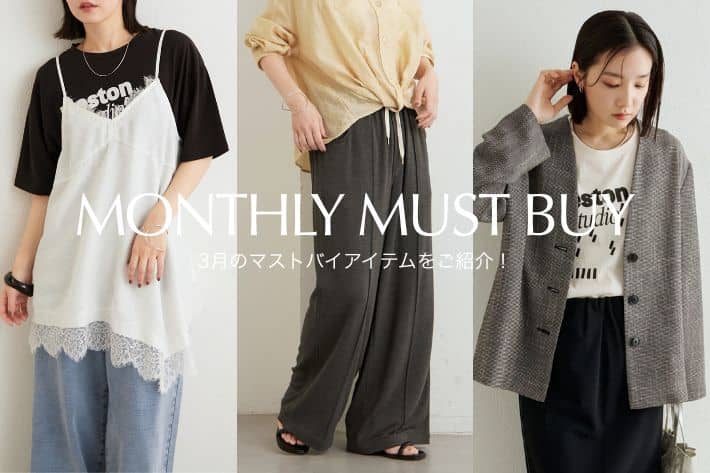 2026.03.04 NEW Omekashi(オメカシ)【迷ったらこれ!】3月のマストバイアイテムをご紹介! - 3月のマストバイアイテムはこれ! - Omekashiでは春夏の新作アイテムが続々と登場! 徐々に気温も上がり、春らしい季節になってきた3月。 これからの時期に使える春アウターや Omekashiらしいレイヤードアイテムが大活躍の季節です♪ Omekashiがおすすめする 『3月のマストバイアイテム』をご紹介! お買い物の参考に、ぜひご覧くださいませ。 ▽ CATEGORY ▽ レースキャミチュニック Offwhite / Beige / Black \10,450(税込) レースオーバーキャミソール Offwhite / Black \13,200(税込) 刺繍セルロースソフトオーバーシャツ Offwhite / Brown / Charcoalgray \17,600(税込) フリルロングTシャツ Offwhite / Black / Beige / Blue \8,800(税込) 裾バルーンロングTシャツ Offwhite / Beige / Black \11,000(税込) メッシュワイドニット Offwhite / Brown / Beige / Black \11,000(税込) TOPS ITEMS ALL > トロミ裏毛パンツ Gray / Charcoalgray \12,100(税込) 【HIURA】企画イージーパンツ Offwhite / Charcoalgray / Black \12,100(税込) スウェットデニムフレアパンツ Navy / Charcoalgray \16,500(税込) セルロースソフトナロースカート Offwhite / Brown / Charcoalgray \16,500(税込) PANTS ITEMS ALL > SKIRT ITEMS ALL > カラミノーカラージャケット Brown / Black ¥28,600(税込) レザー襟取り外しカバーオール Offwhite / Blue / Black \20,900(税込) シアーメッシュジャケット Beige / Khaki / Black \18,700(税込) シアーデニムカバーオール Saxblue / Navy / Black \17,600(税込) OUTER ITEMS ALL > PICK UP ITEM NEW 予約 手洗い可 Omekashi カラミノーカラージャケット ¥28,600 NEW 手洗い可 Omekashi レザー襟取り外しカバーオール ¥20,900 NEW 予約 手洗い可 Omekashi 【HIURA企画】【低身長サイズあり】イージーパンツ ¥12,100 NEW 予約 手洗い可 Omekashi メッシュワイドニット ¥11,000 NEW 予約 手洗い可 Omekashi シアーメッシュジャケット ¥18,700 予約 手洗い可 Omekashi トロミ裏毛パンツ ¥12,100 予約 手洗い可 Omekashi 【人気急上昇中!】レースキャミチュニック ¥10,450 予約 手洗い可 Omekashi シアーデニムカバーオール ¥17,600 予約 手洗い可 Omekashi 【4色展開】フリルロングTシャツ ¥8,800 予約 手洗い可 Omekashi 裾バルーンロングTシャツ ¥11,000 手洗い可 Omekashi 【セットアップ着用可能◎】セルロースソフトナロースカート ¥16,500 手洗い可 Omekashi 【セットアップ着用可能◎】刺繍セルロースソフトオーバーシャツ ¥17,600 予約 手洗い可 Omekashi 【全骨格対応】スウェットデニムフレアパンツ ¥16,500 予約 手洗い可 Omekashi 【シーズンレスアイテム◎】レースオーバーキャミソール ¥13,200 2026.03.03 NEW Omekashi 【RANKING TOP10】2月の人気新作アイテムをランキングでご紹介! 2026.03.03 NEW Omekashi 【NEW PRE ORDER】3/6(金)18:00~新作アイテムのご予約がスタート! 2026.02.26 Omekashi 【2026 Spring&Summer】preorder EVENT TOKYO 2days開催! 2026.02.17 Omekashi 【2026 Spring&Summer】セレモニーアイテム特集! 2026.02.12 Omekashi 【2026 Spring&Summer】new line up vol.2 2026.02.11 Omekashi 【パルクロ春一番開催中!】買うべきアイテムまとめました! 2026.02.06 Omekashi 【NEW PRE ORDER】2/12(木)0:00~新作アイテムのご予約がスタート! 2026.02.06 Omekashi 【迷ったらこれ!】2月のマストバイアイテムをご紹介! ニュース一覧へ > < ニュース一覧へ >