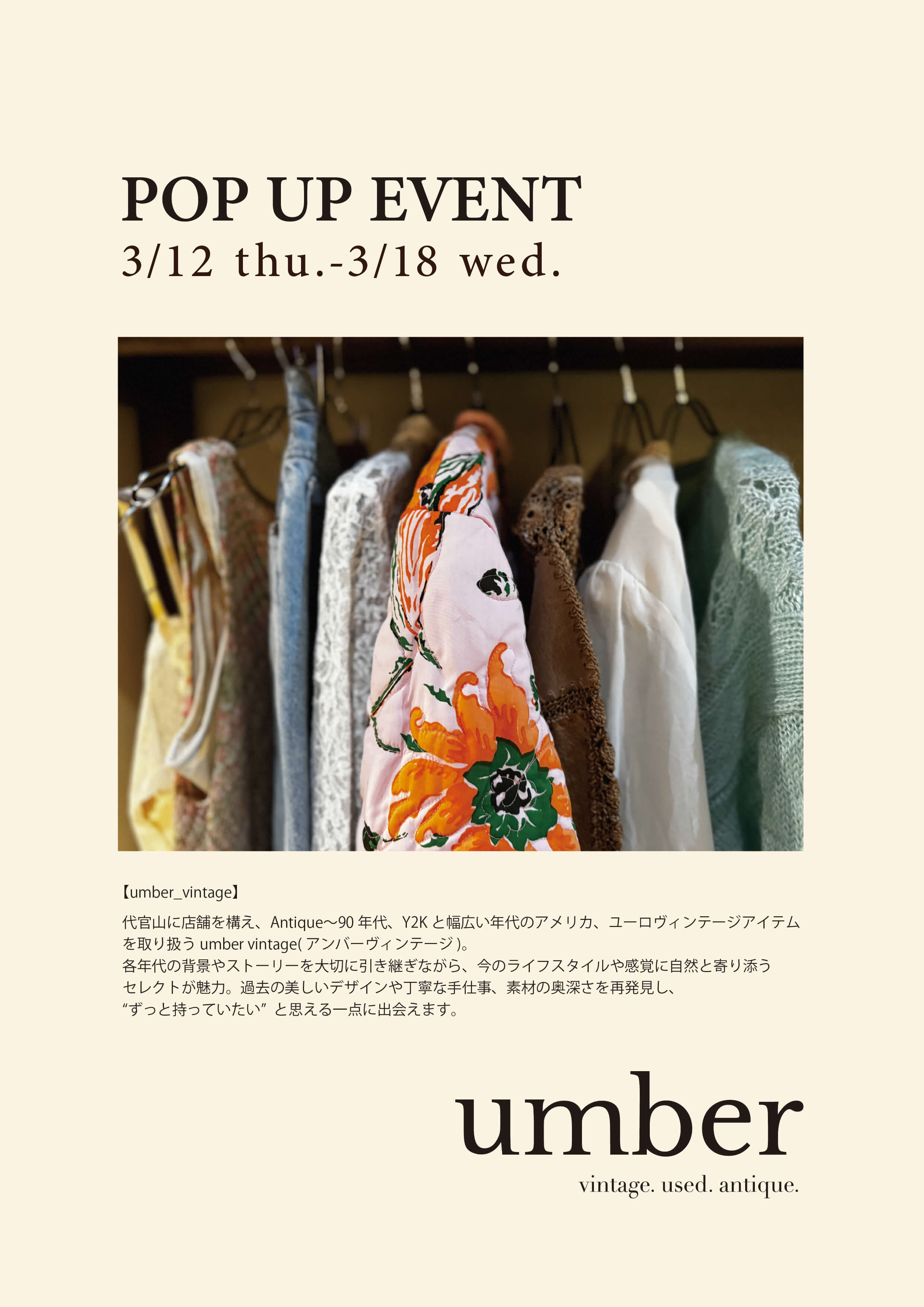 ②新宿・池袋店限定でumber_vintage POP UPとFITTING EVENT開催