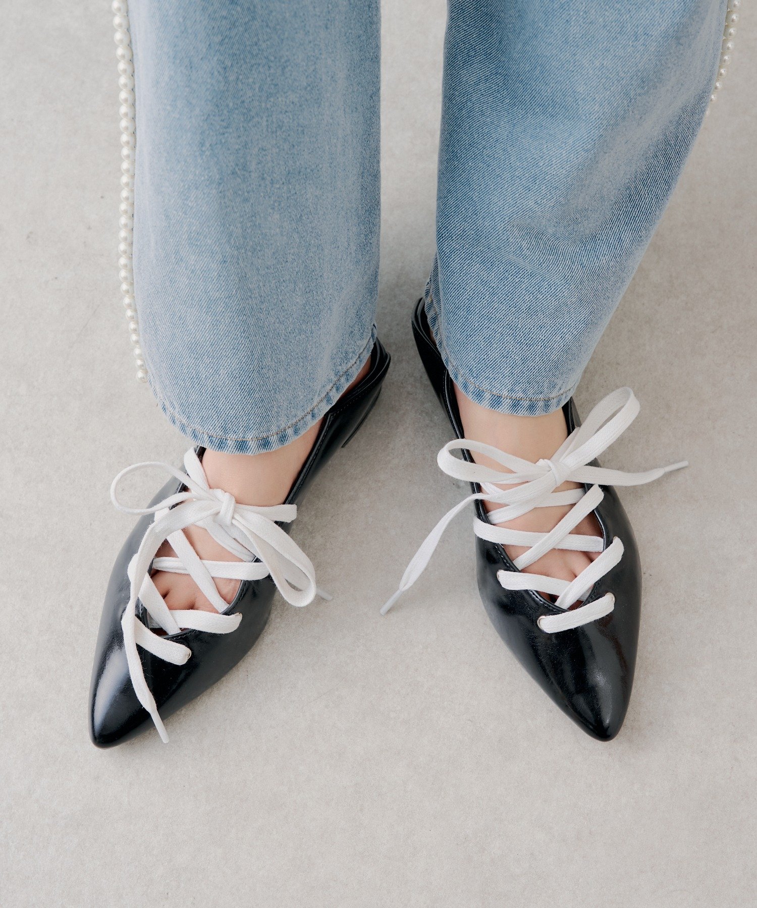 -レースアップバイカラーミュール-