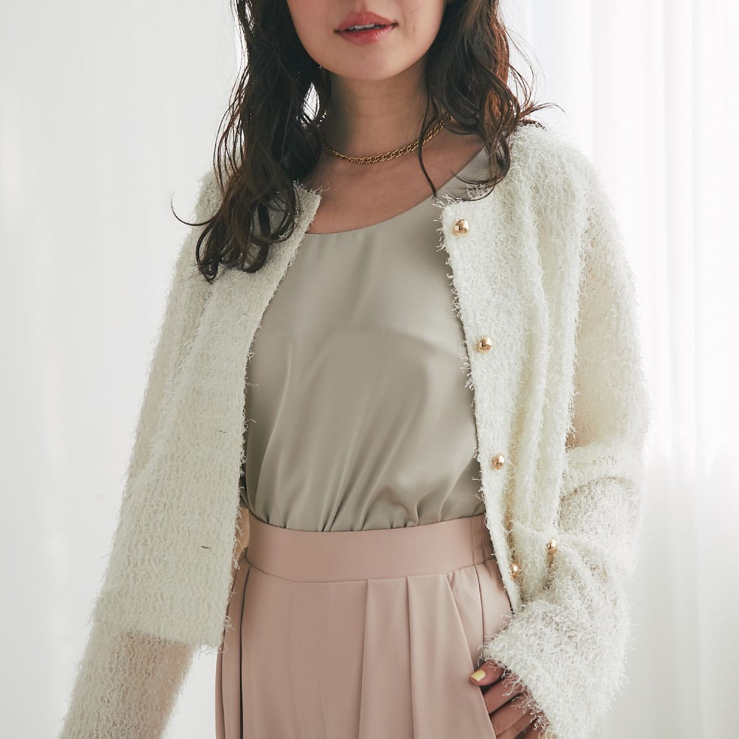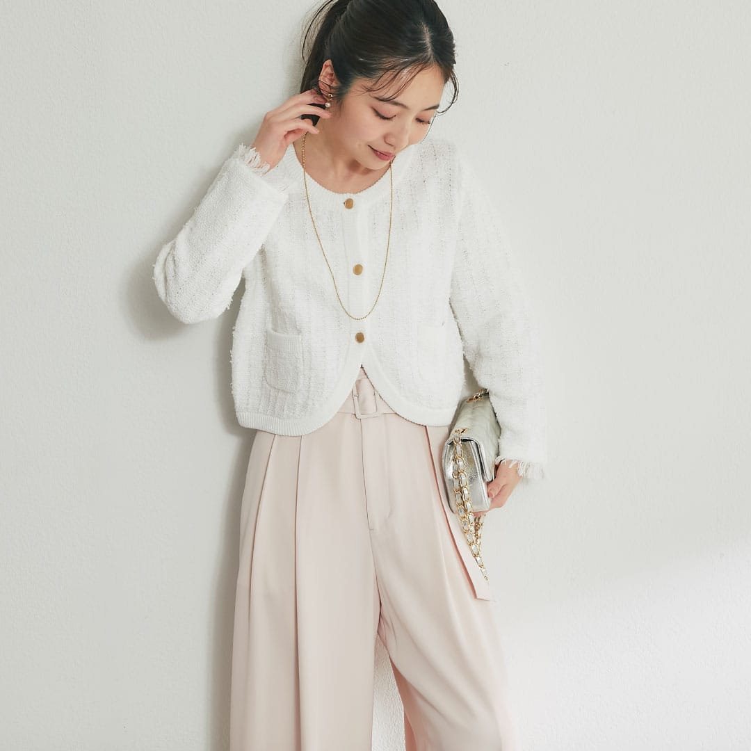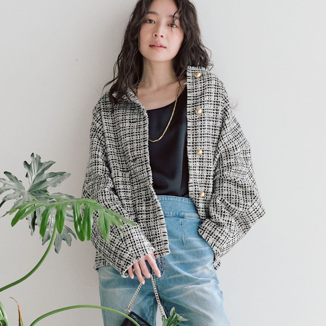 華やかなツイードのジャケットやセットアップ可能なジャケットなど、
