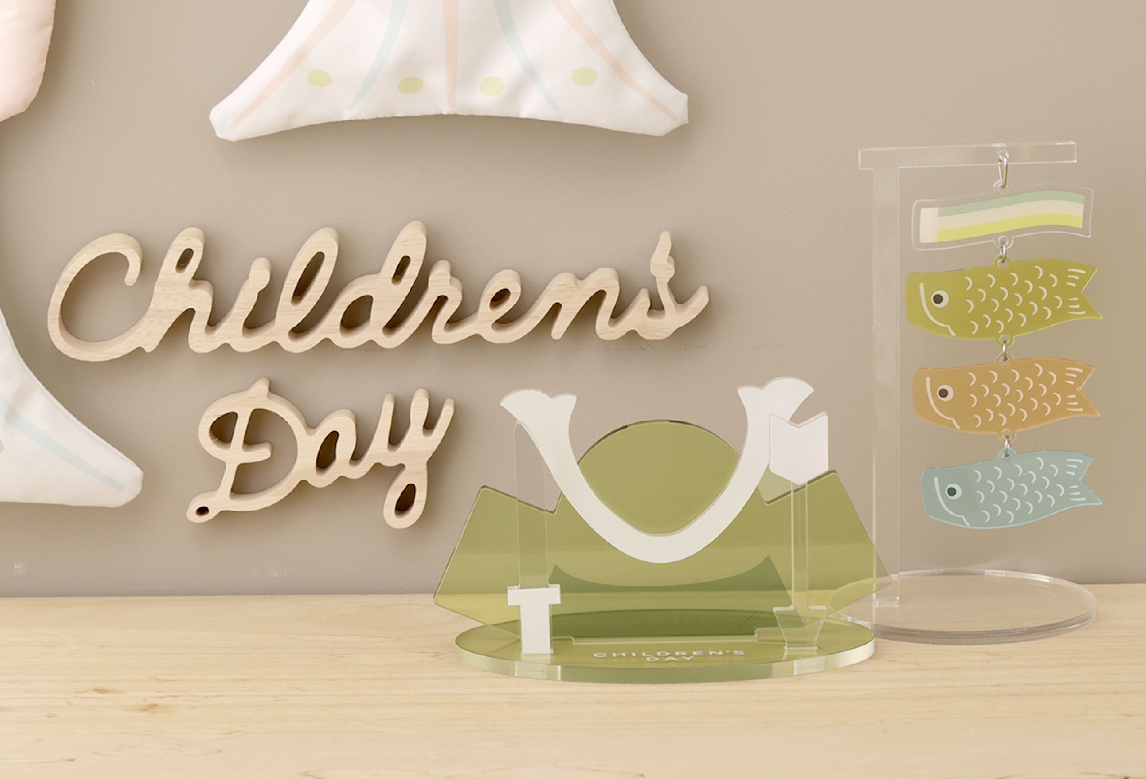 淡いカラーの袴や兜、透明感の美しいアクリルインテリアをラインナップ。