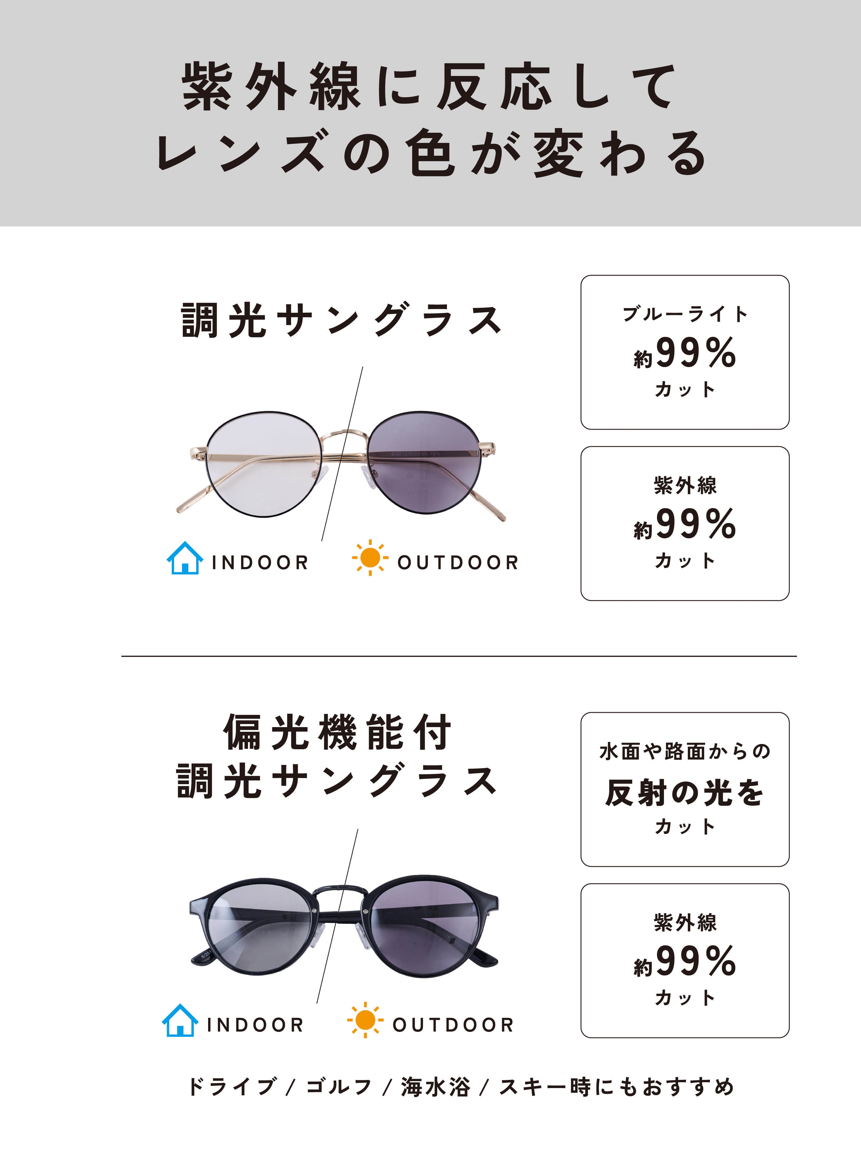 レンズの色が変化する『調光サングラス』が今年も登場。