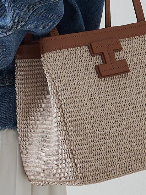 夏素材はシーズン限定の印象がありますが、実は春先から真夏までロングスパンで活躍。軽やかな表情でスタイリングを更新しながら、レザーとのコンビネーションが程よいきちんと感もキープします。天然素材ではないため扱いやすく、お手入れのしやすさも魅力。シーズン感と実用性、そのどちらも妥協しないシーズンバッグです。