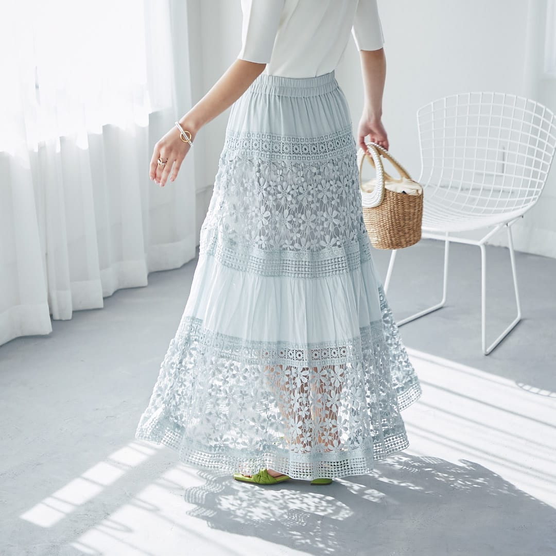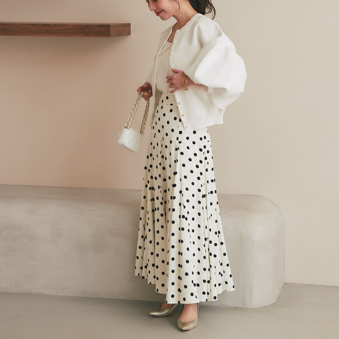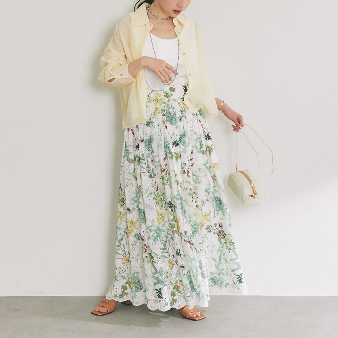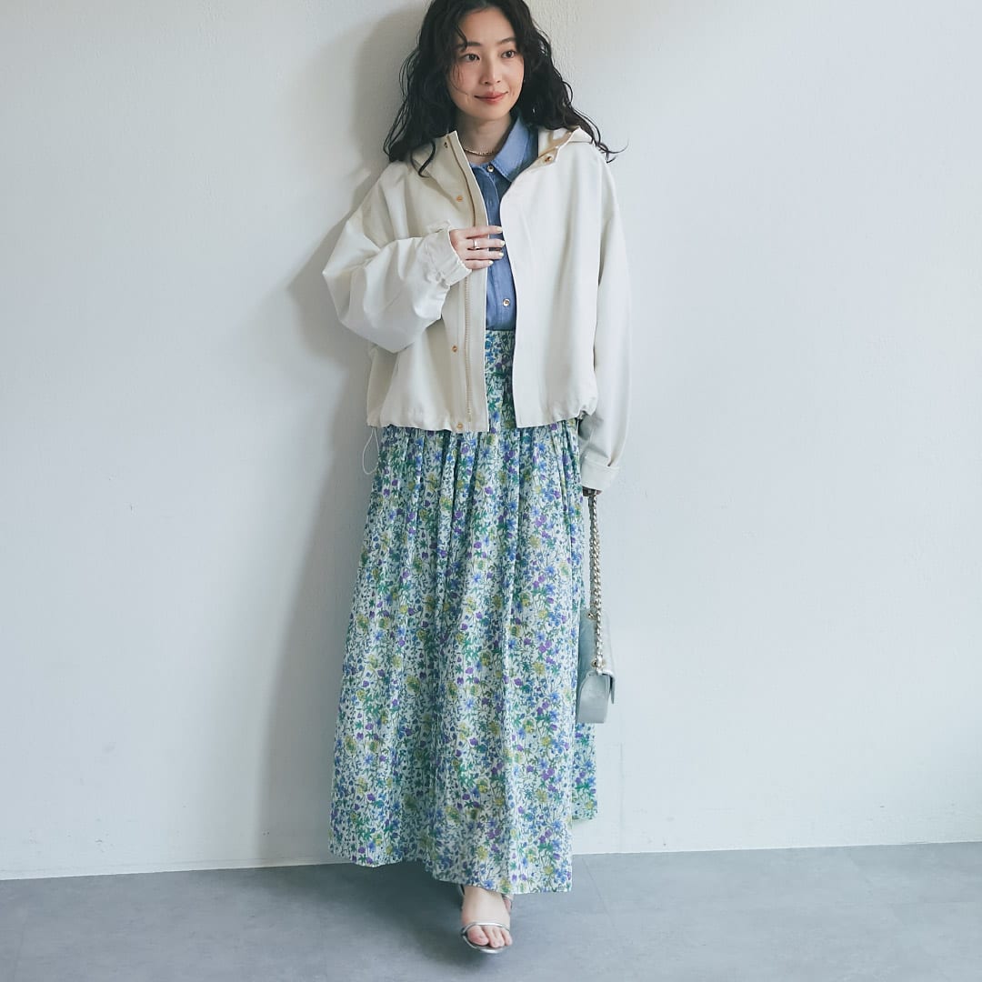 ボトムにも春のカラーや柄アイテムなど取り入れて、