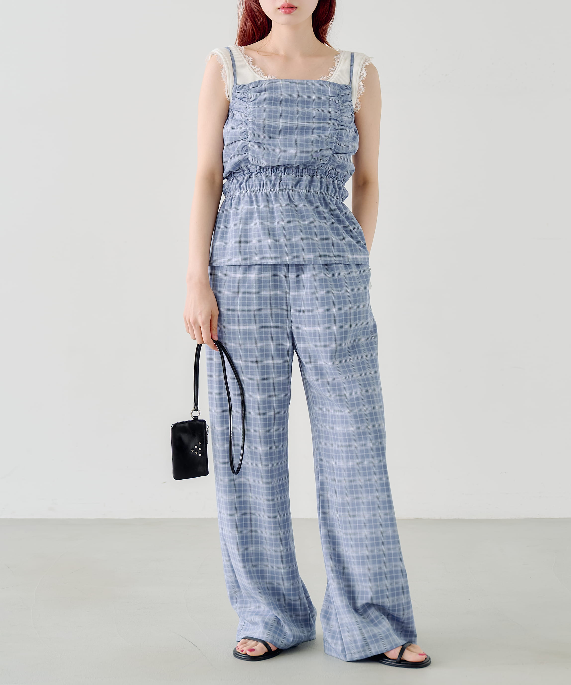 チェックギャザーサロペット