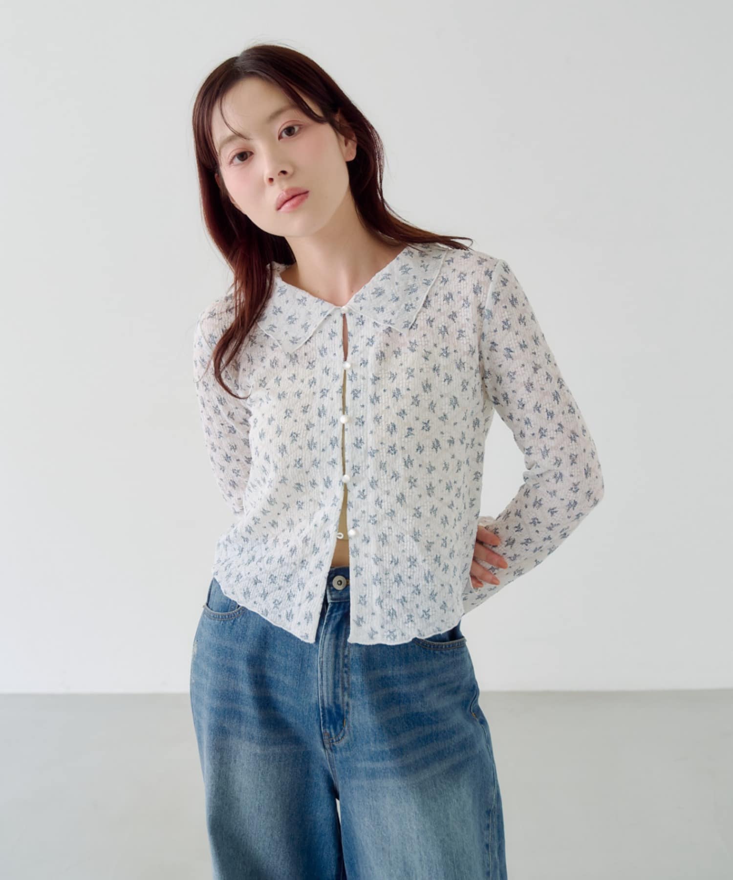 レースフラワー襟付きカーディガン