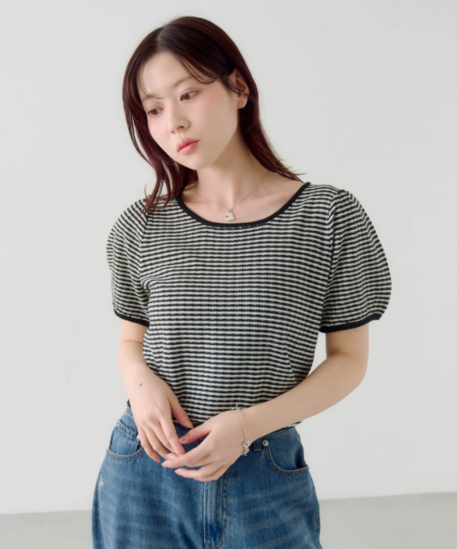 ボーダーパフ半袖ニット
