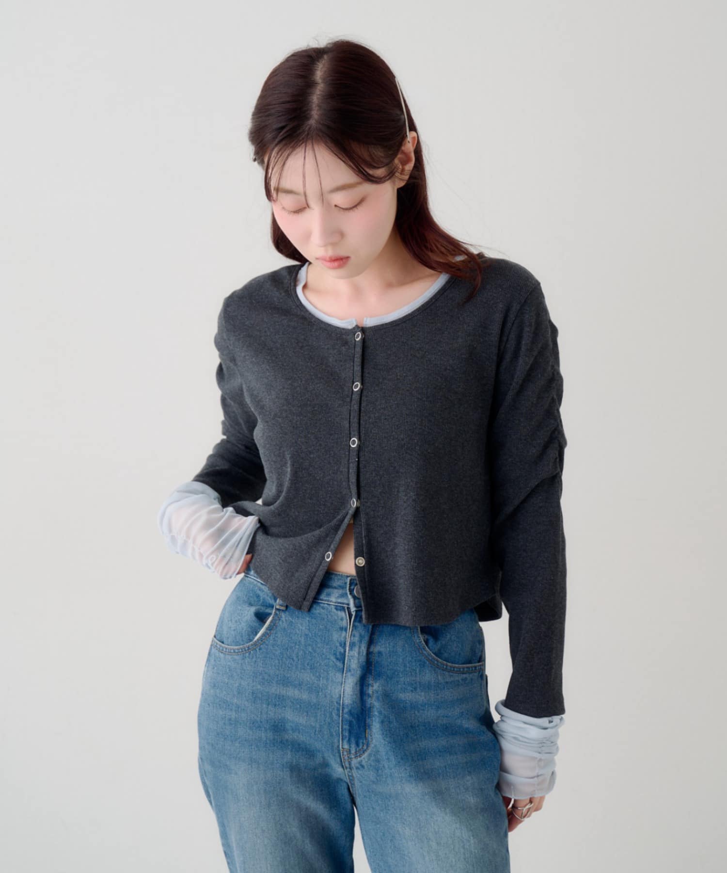袖チュールテレコカーディガン