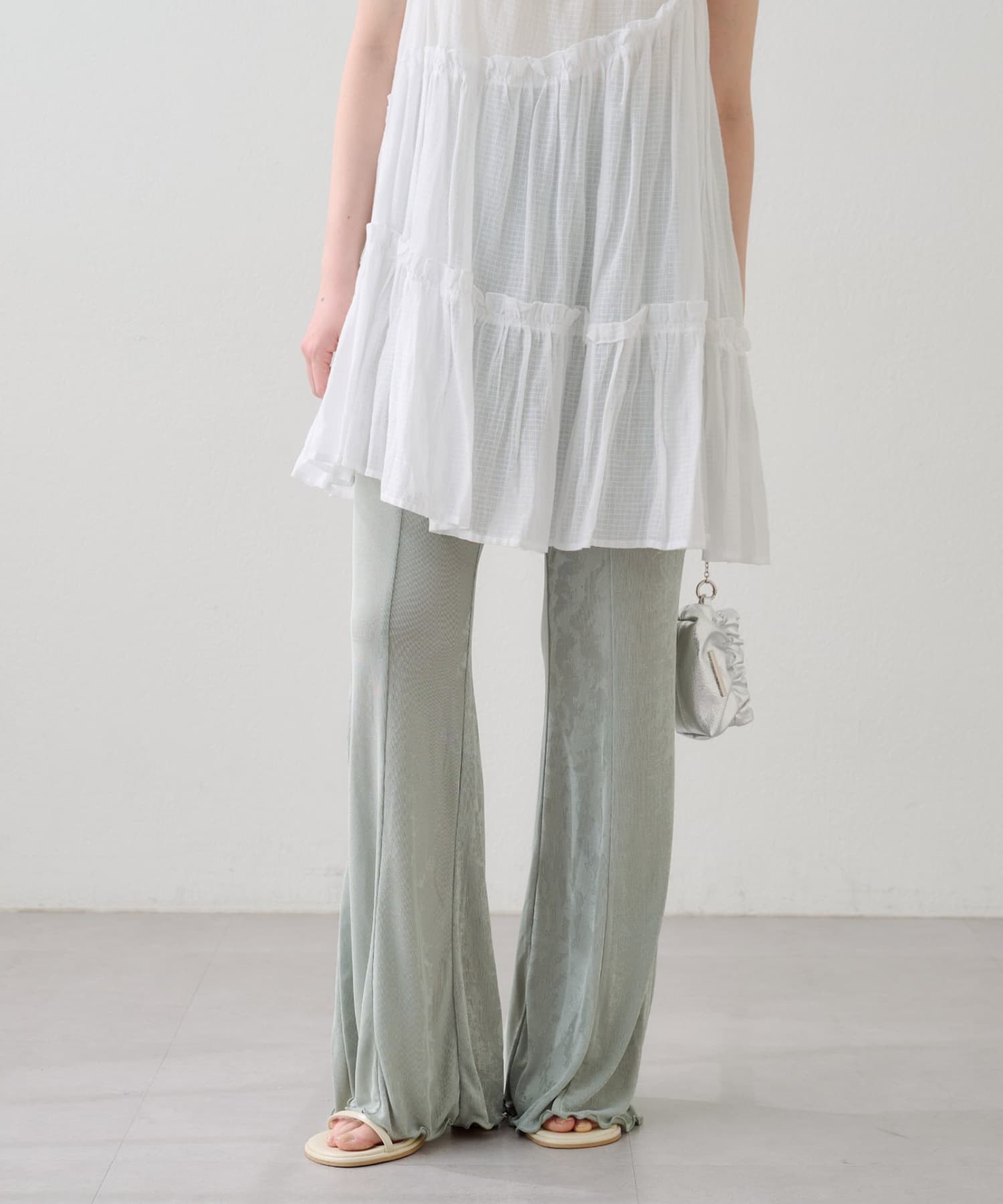 B シアーリブフレアパンツ