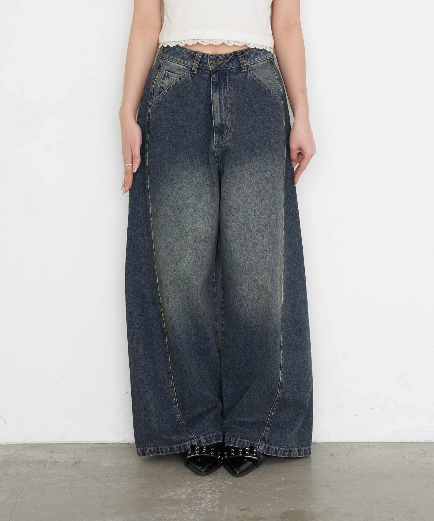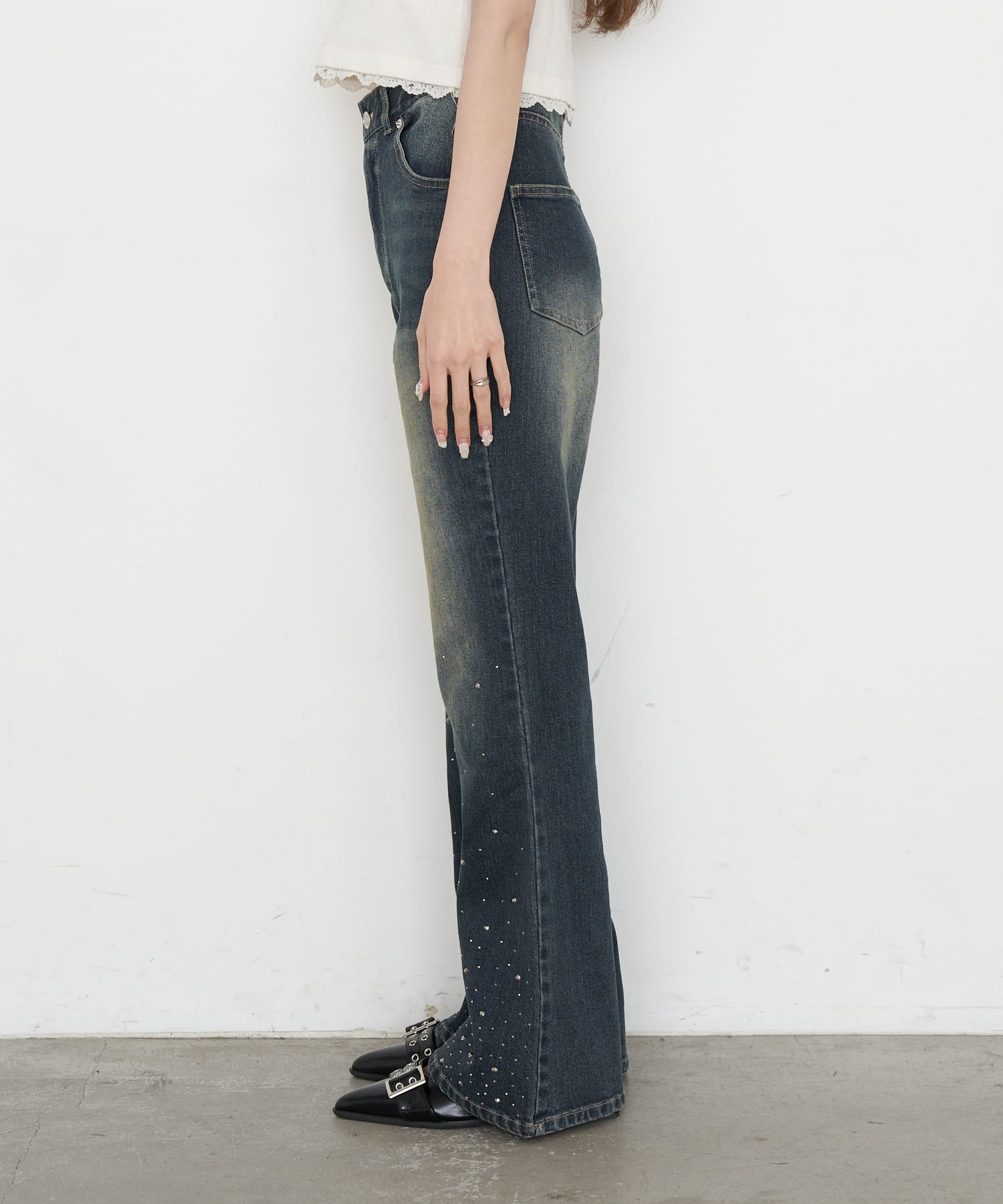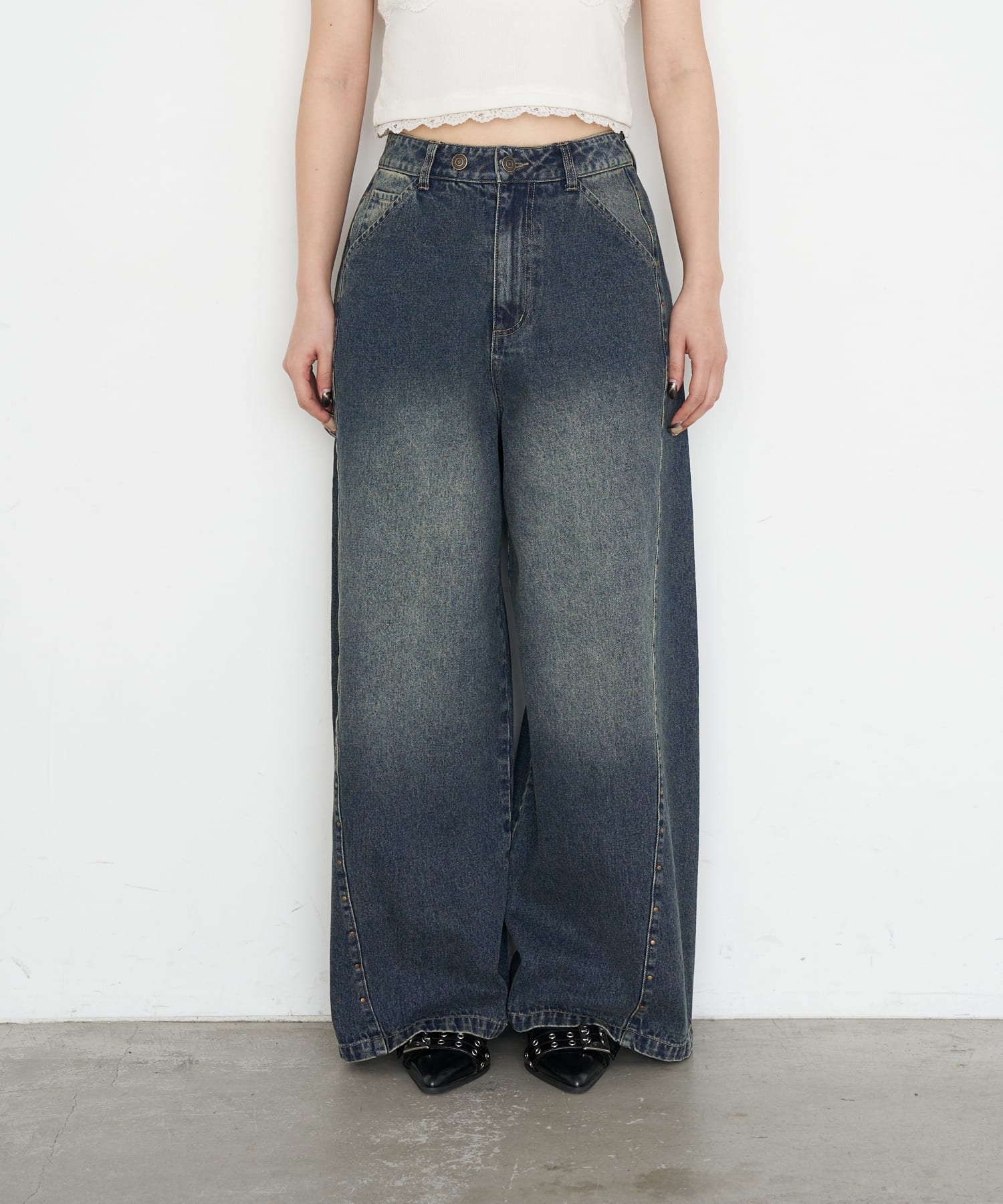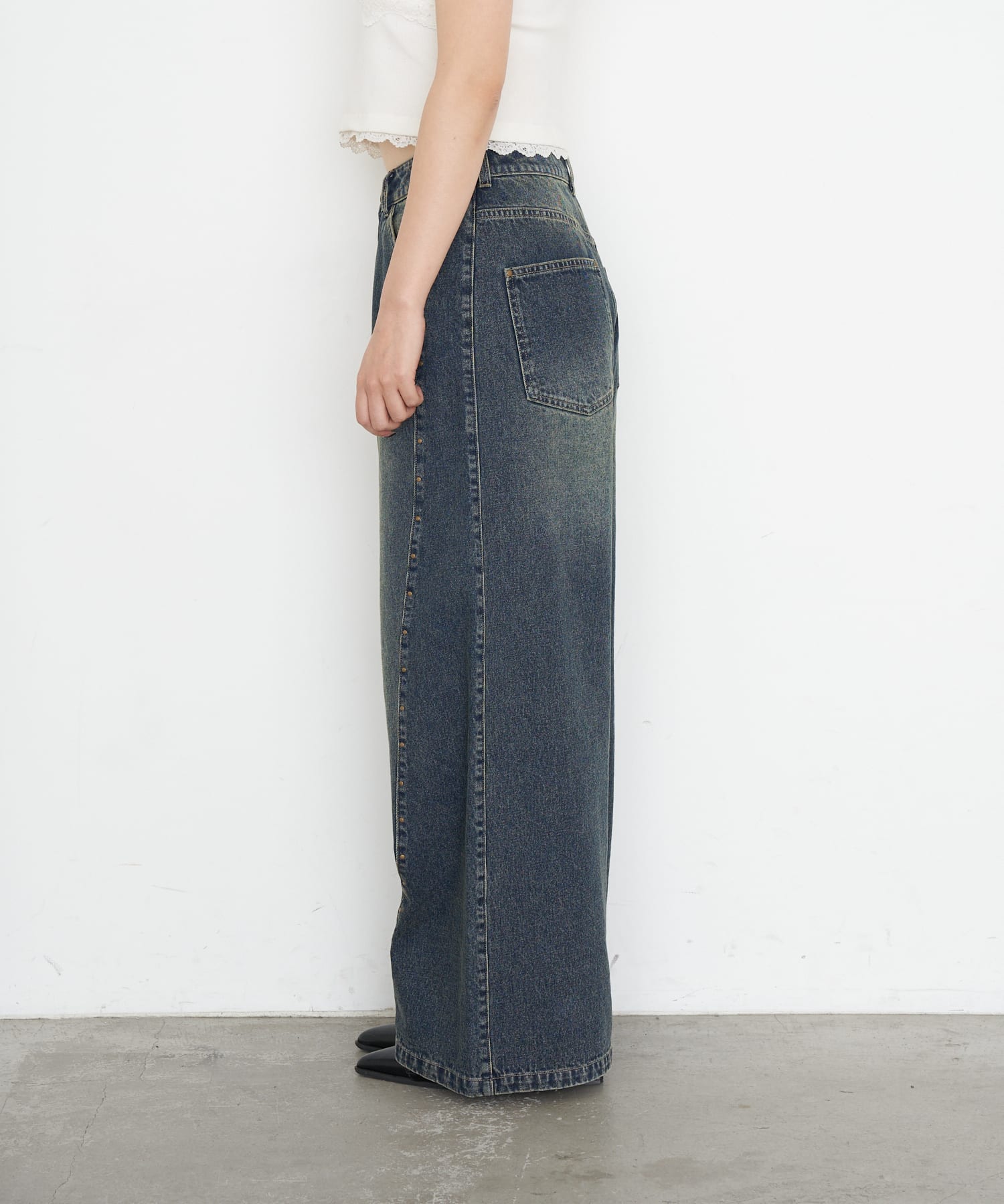 [※画像はサンプルを着用しております。実際の商品はウエストボタンが2つになります。]