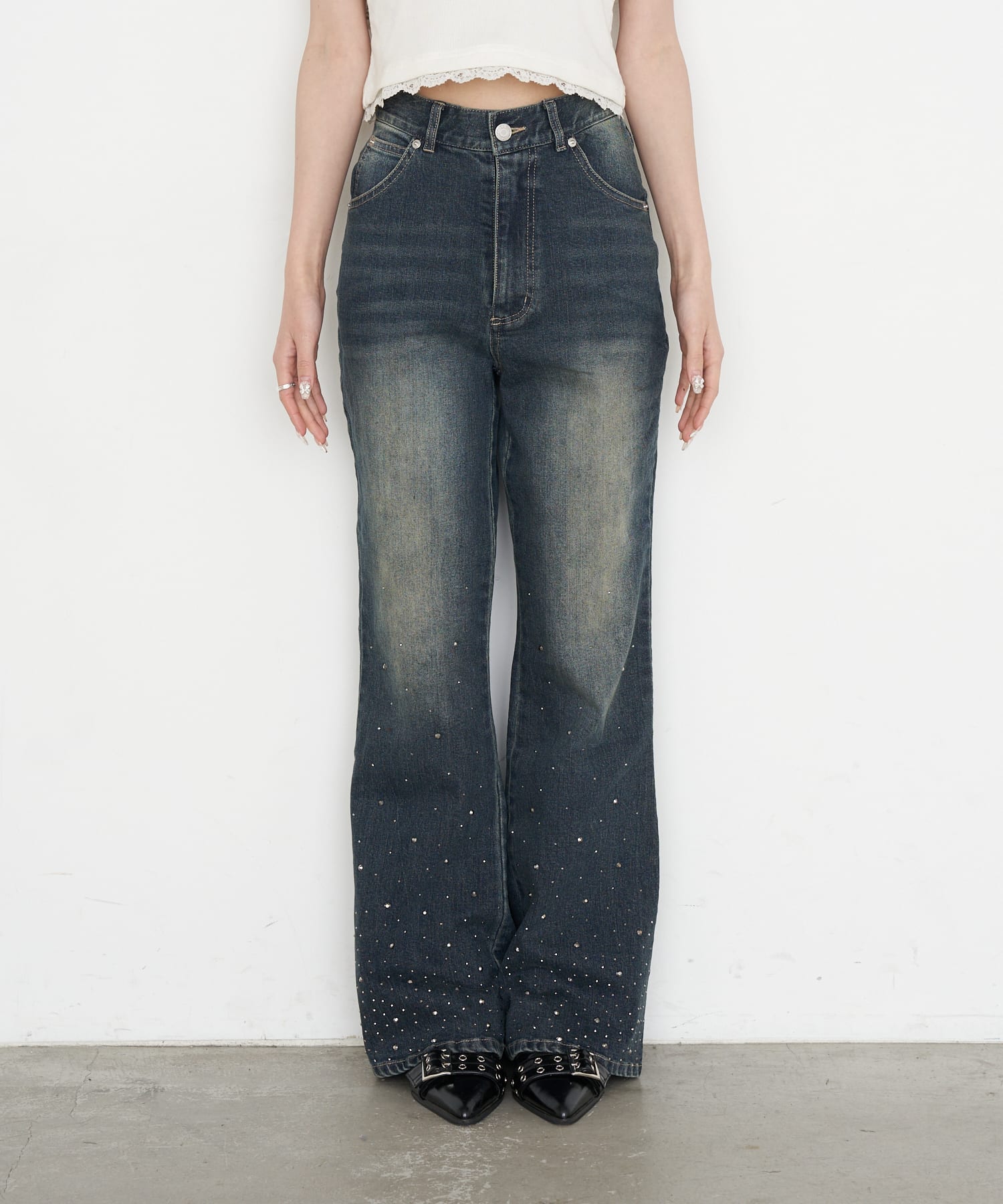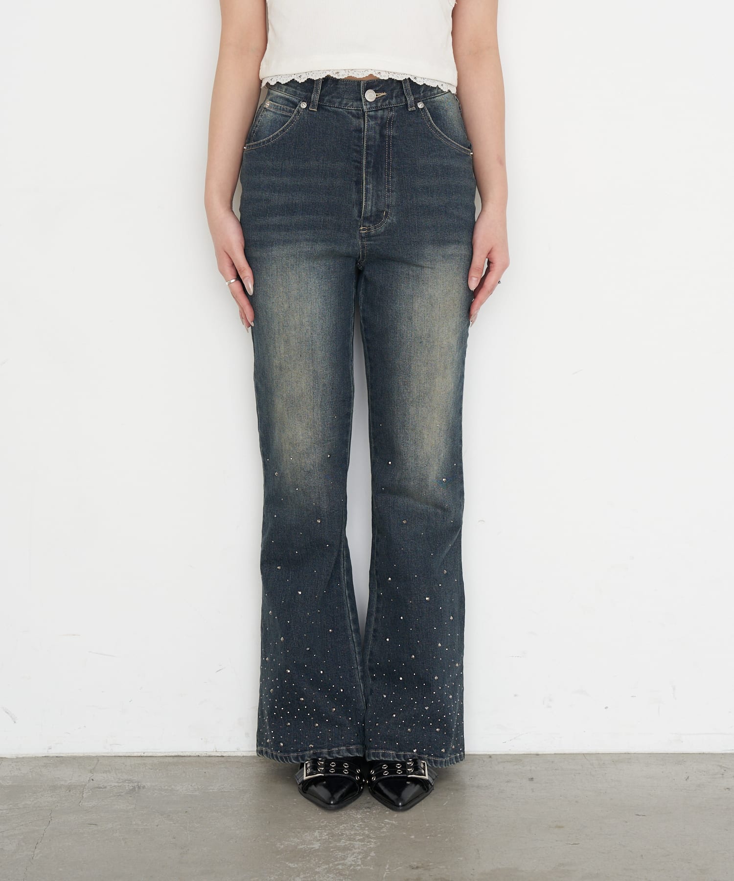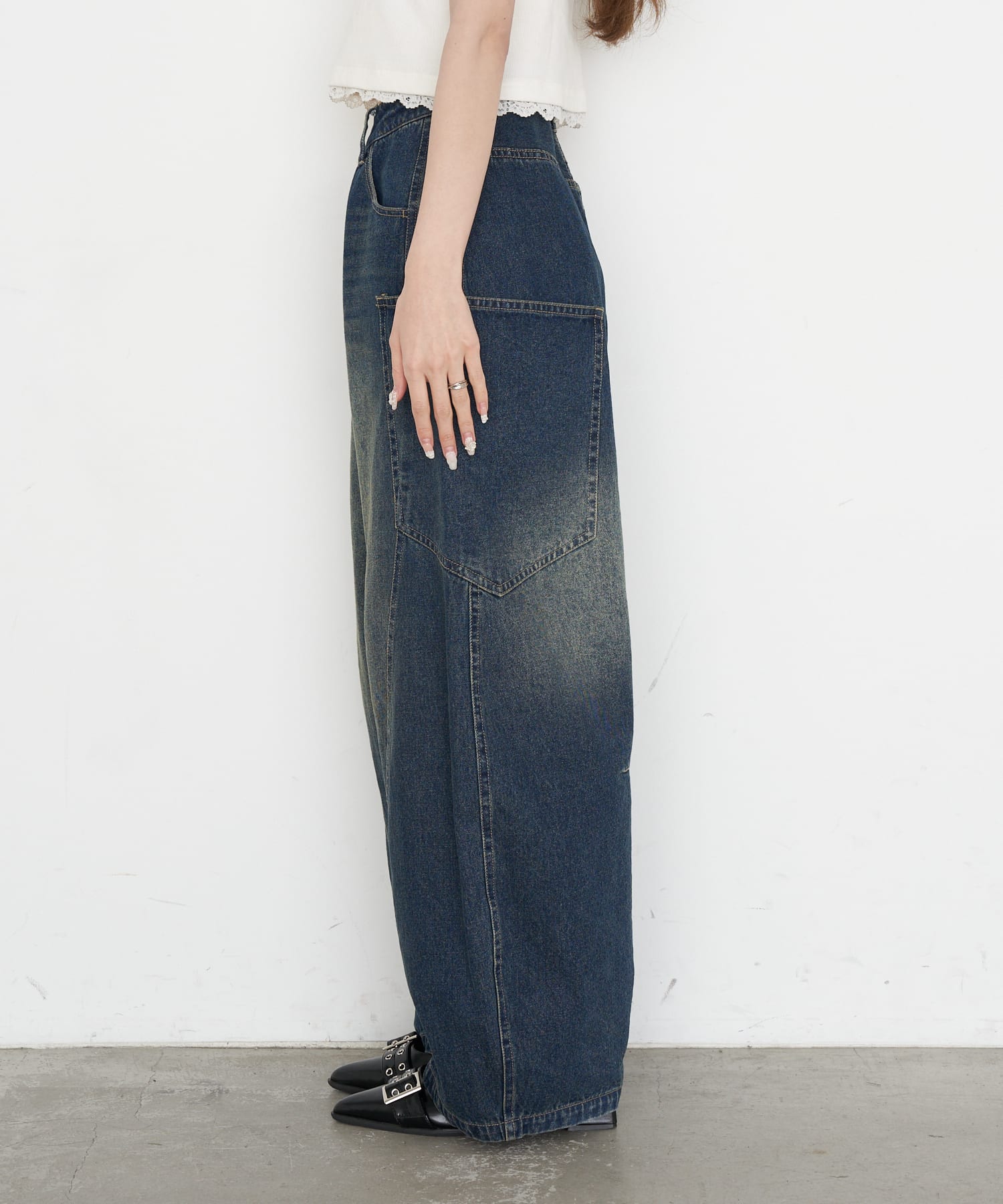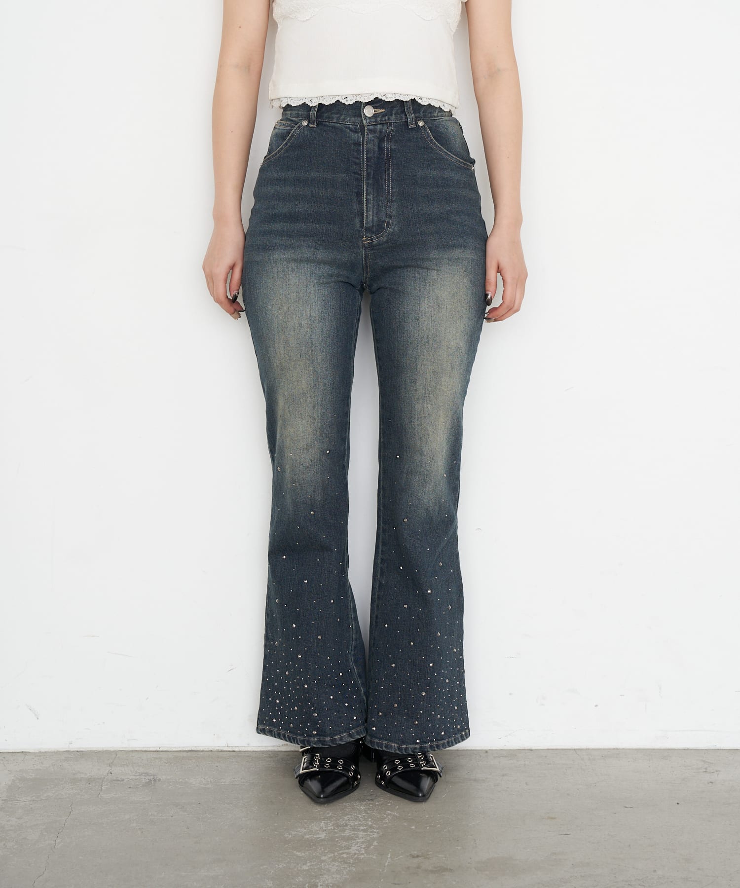 [※画像はサンプルを着用しております。実際の商品はウエストボタンが2つになります。]