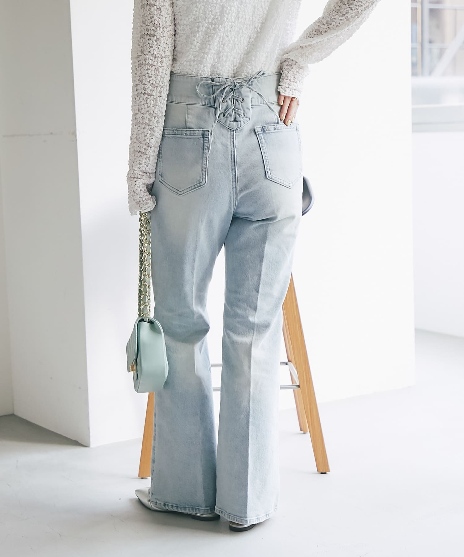 バックレースアップデニムフレアパンツ ¥19,800(税込) \ POINT /