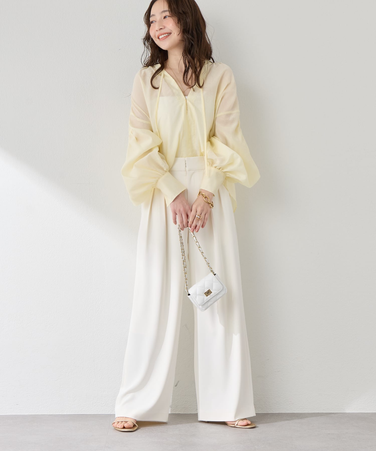 ・長めの袖にはシャーリングを入れてくしゃっと可愛いシルエット。