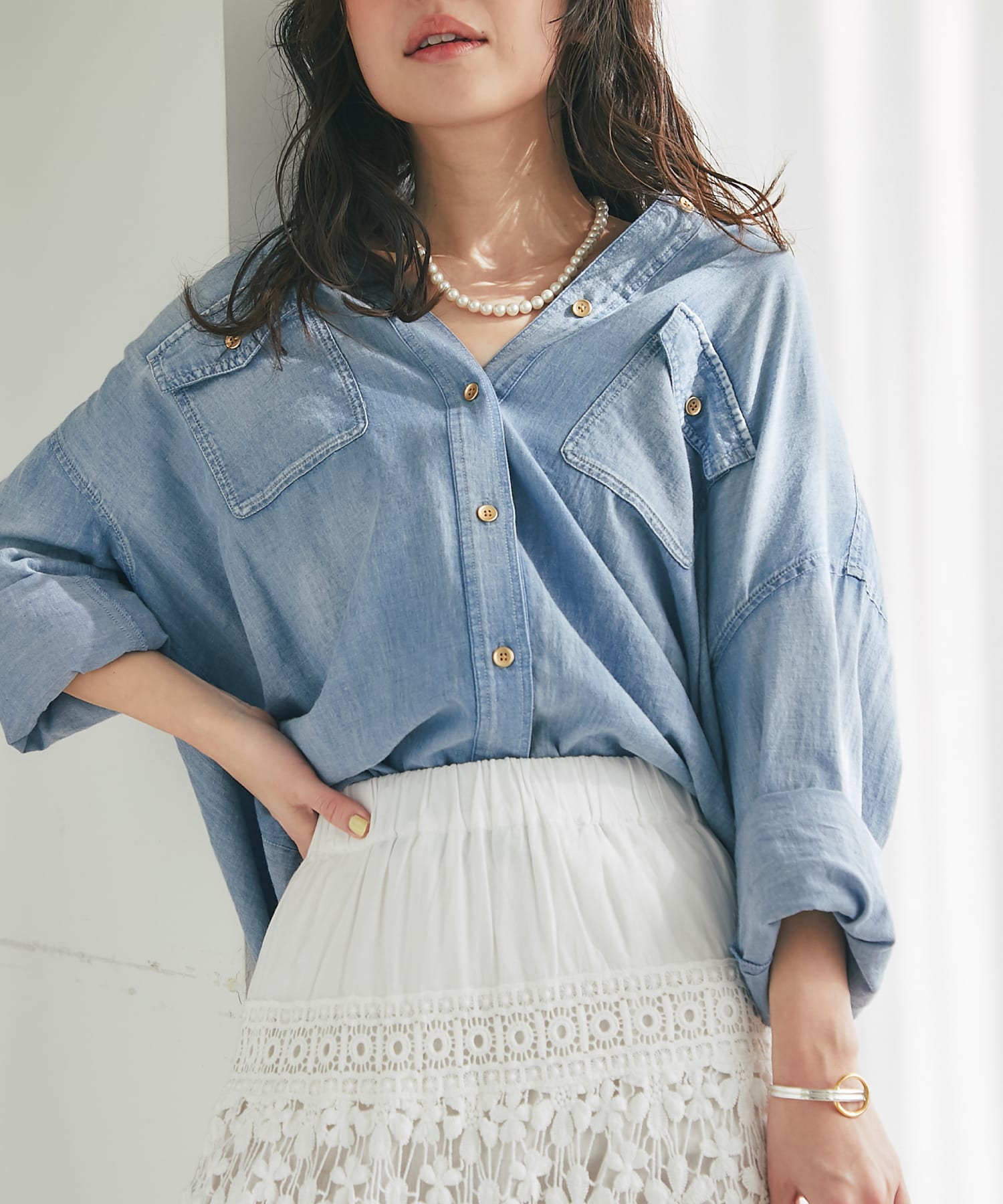 シアーデニム3WAYシャツ ¥18,700(税込) \ POINT /