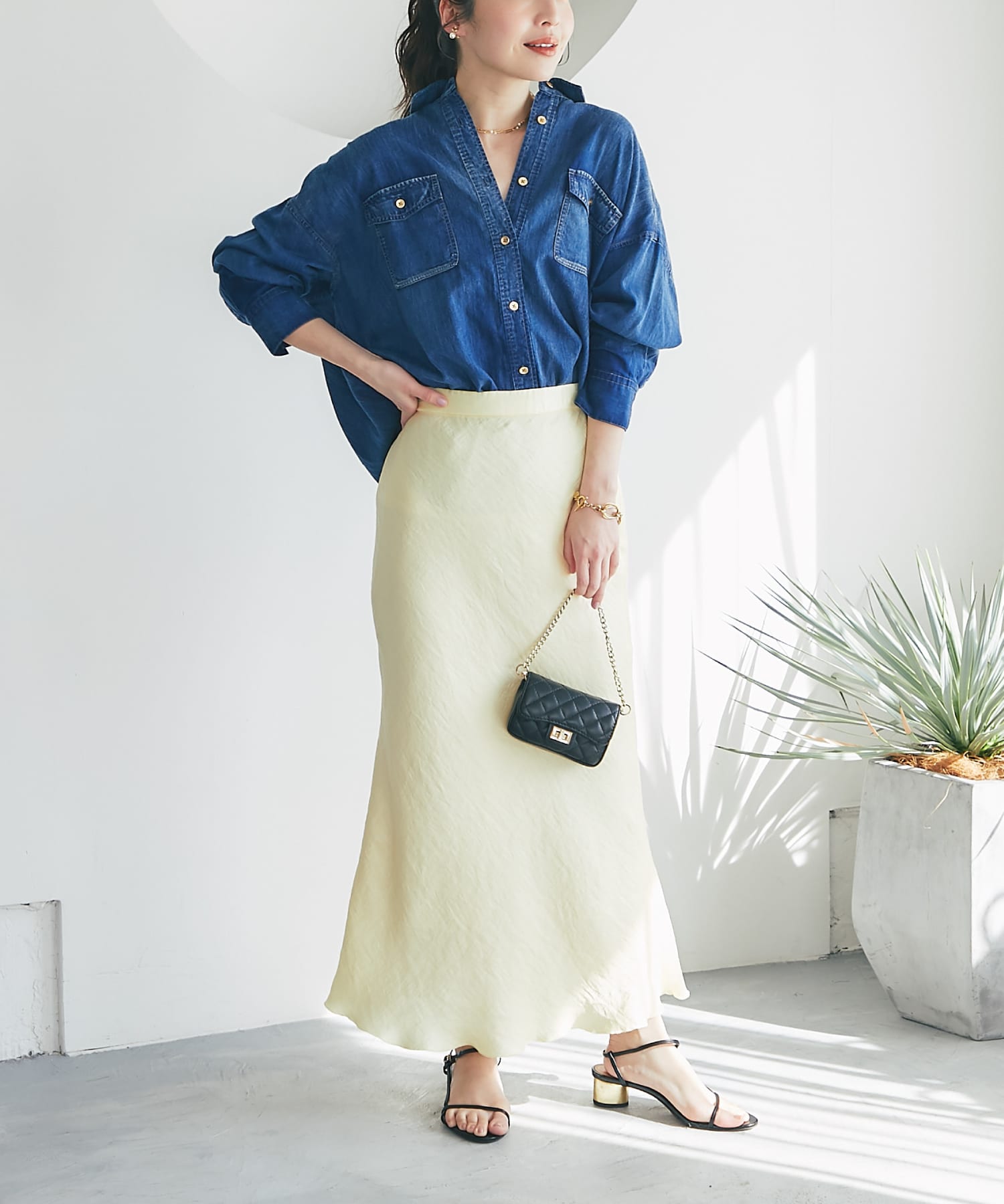 ・トップスを選ばず、シーズンレスで着られる万能アイテムです。