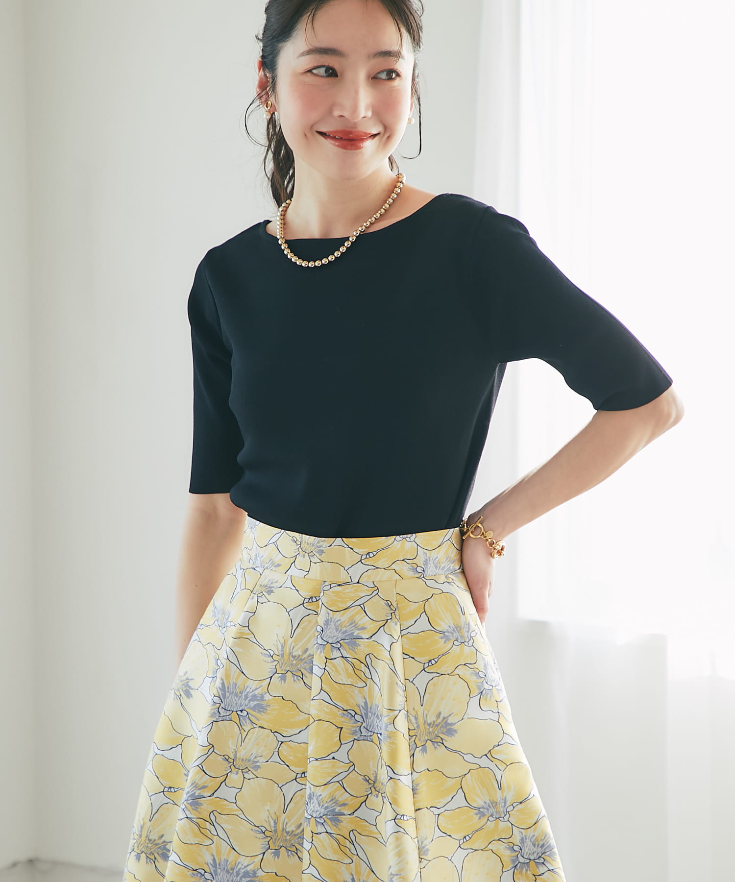 ・5分袖で気になる二の腕もさり気なくカバー。