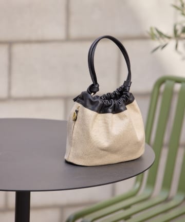きらっと光る麻調素材と上質な牛革を組み合わせた