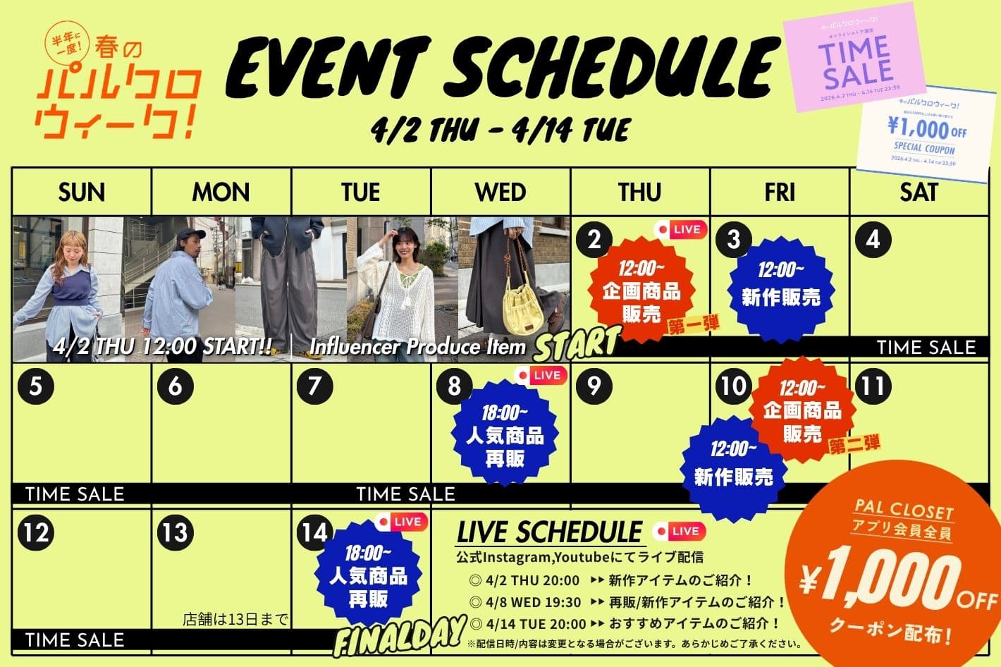 4月2日(木)0:00~4月14日(火)23:59の期間(※)、パルグループの各店舗&パルクローゼットオンラインストアにて半年に一度のお客様感謝フェアを開催いたします。