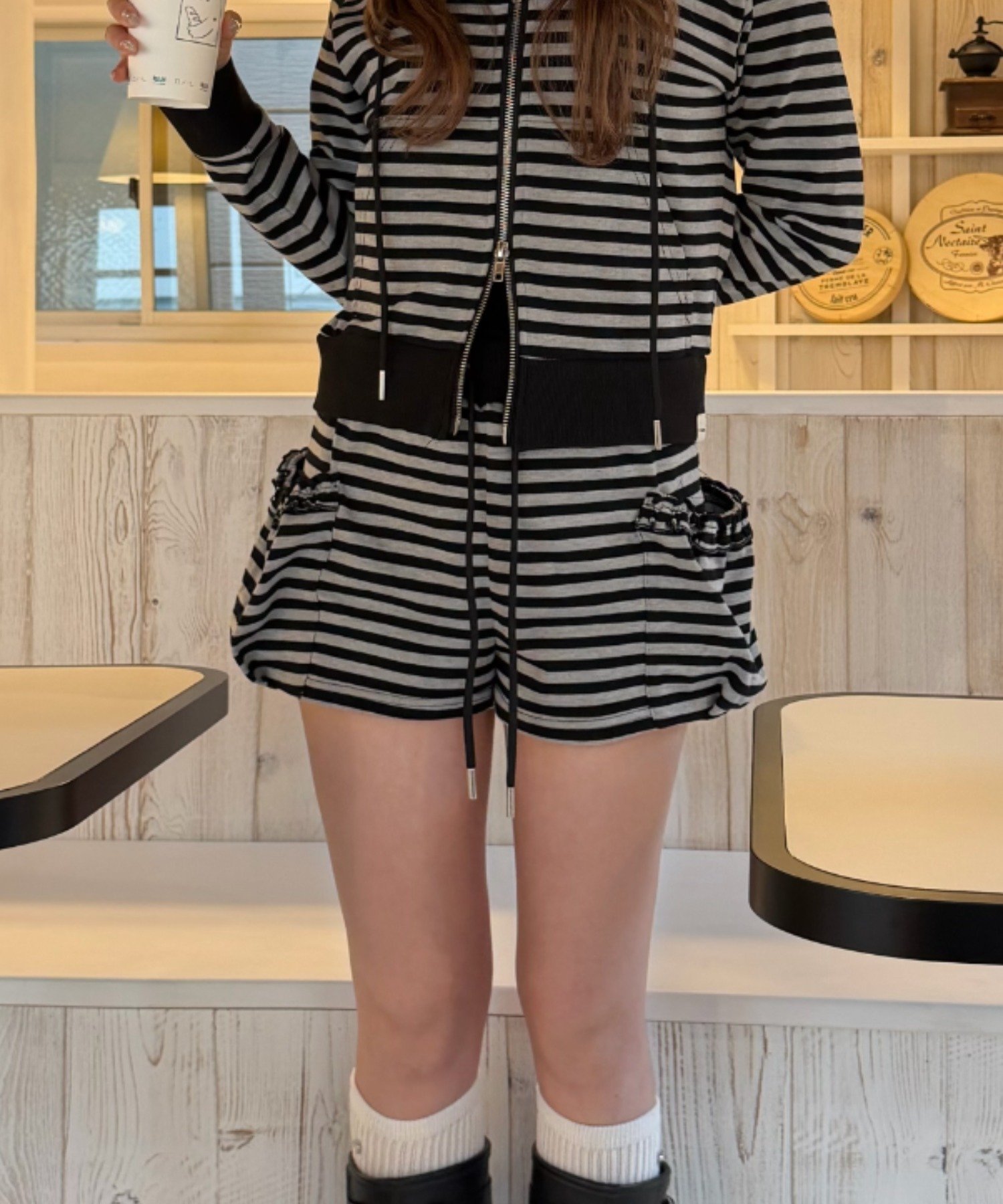 • 【セットアップで着られる】ポケットフリルボーダーマイクロショーツ
