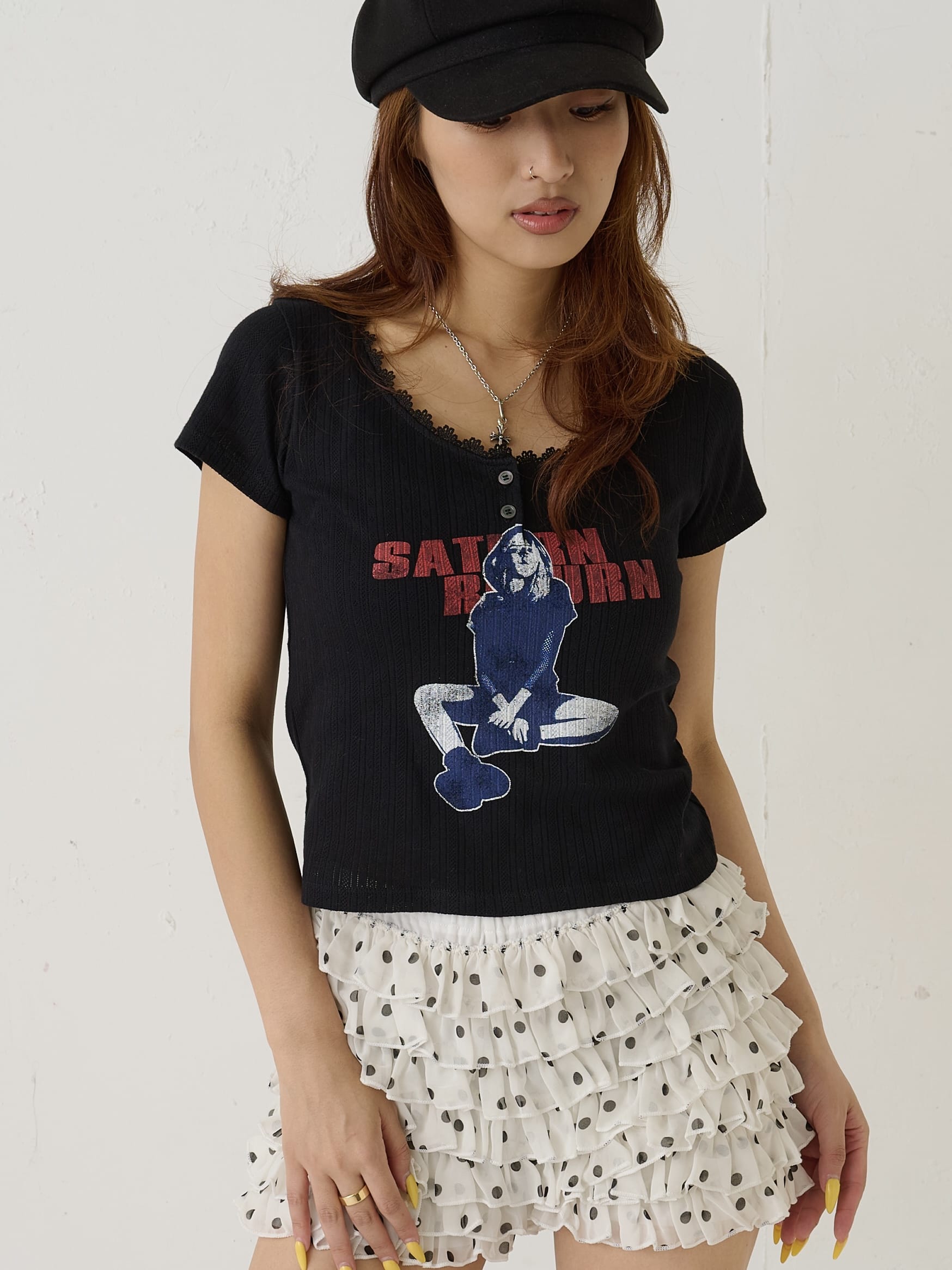 • シャーロットパターンメッシュS/Sトップス