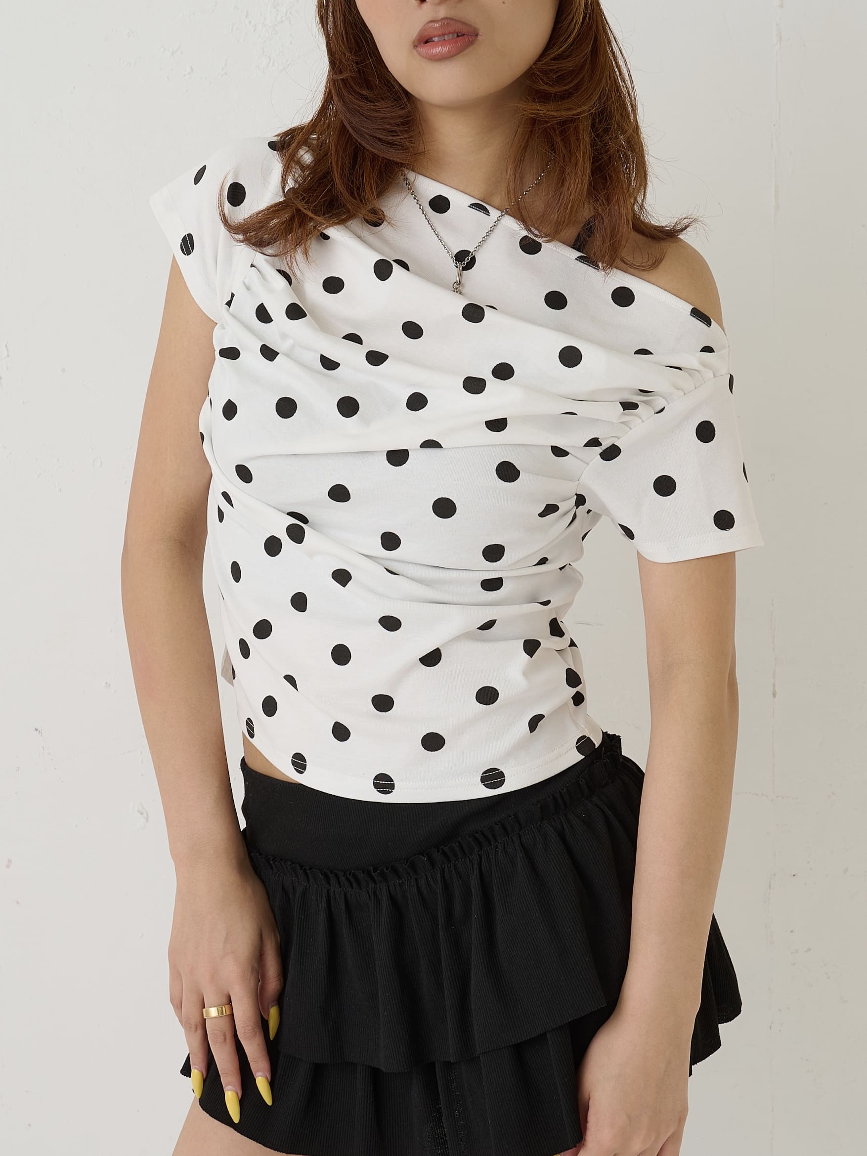 • ギャザーオフショルドットトップス