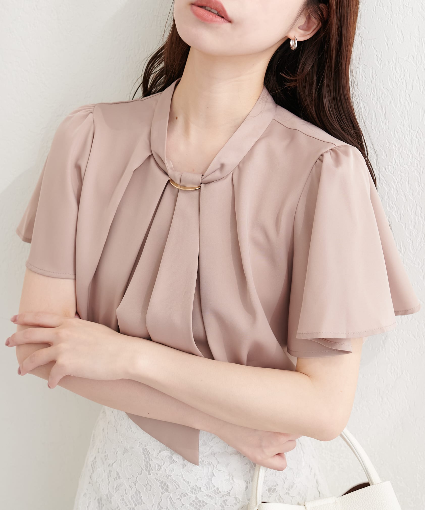 ゴールドバー付きボウタイブラウス