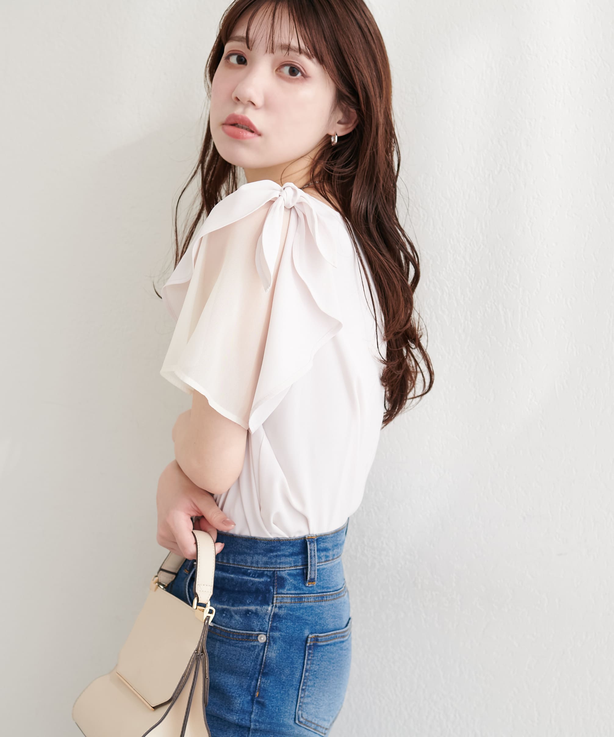ショルダーリボンブラウス
