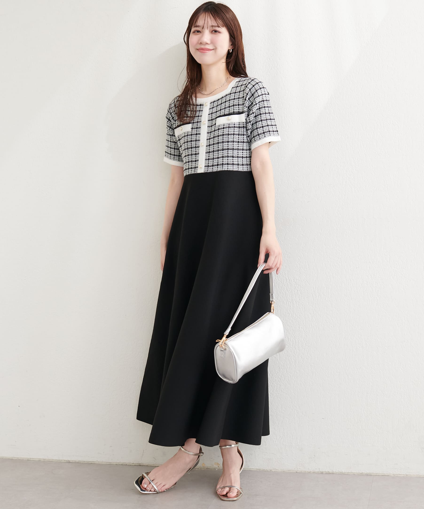 ツイードサマーニットワンピース