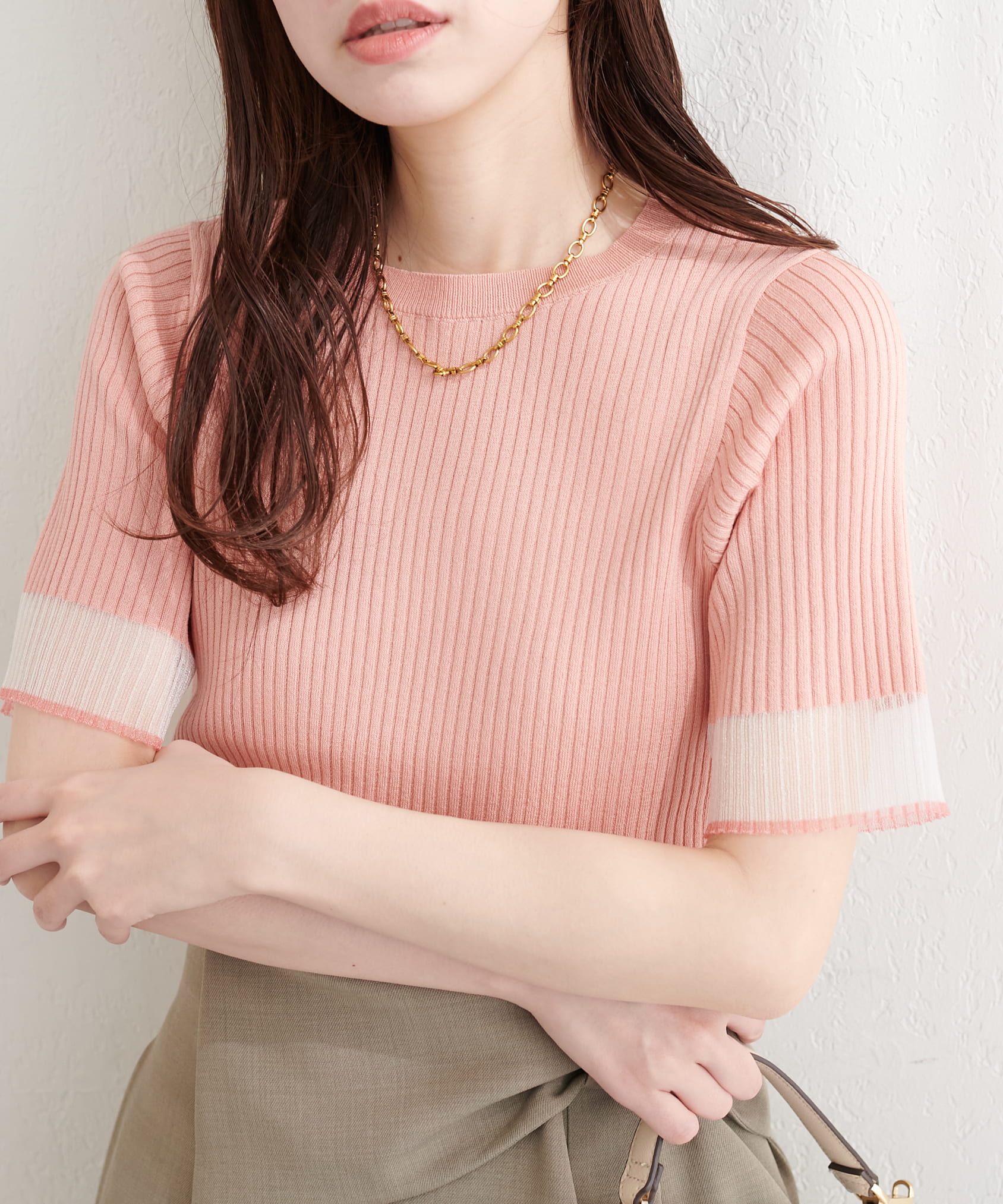 袖口シアー強撚リブニット