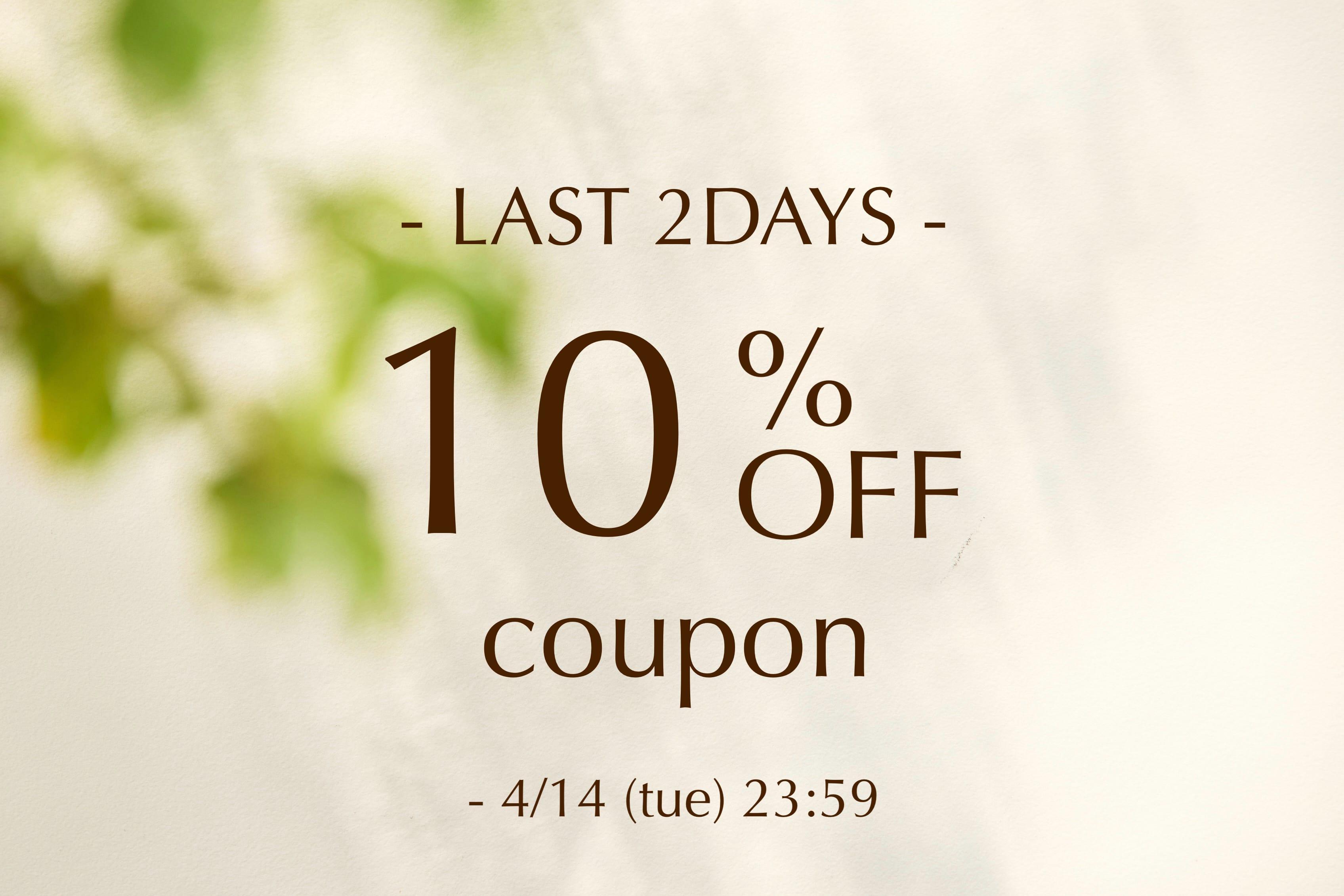 【4/13.14限定!】LAST 2DAYS 10% OFFクーポン