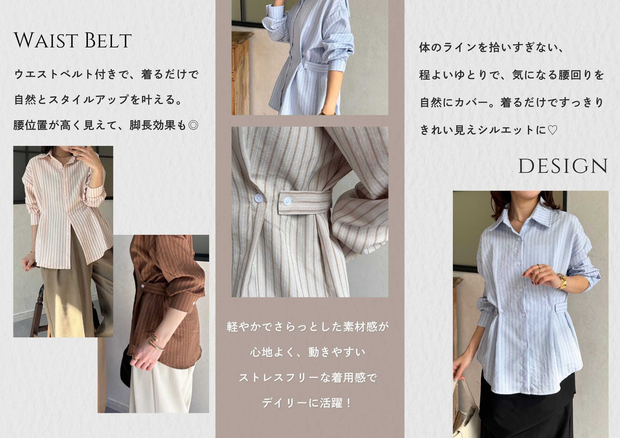 大人気のウエストベルトストライプシャツが、